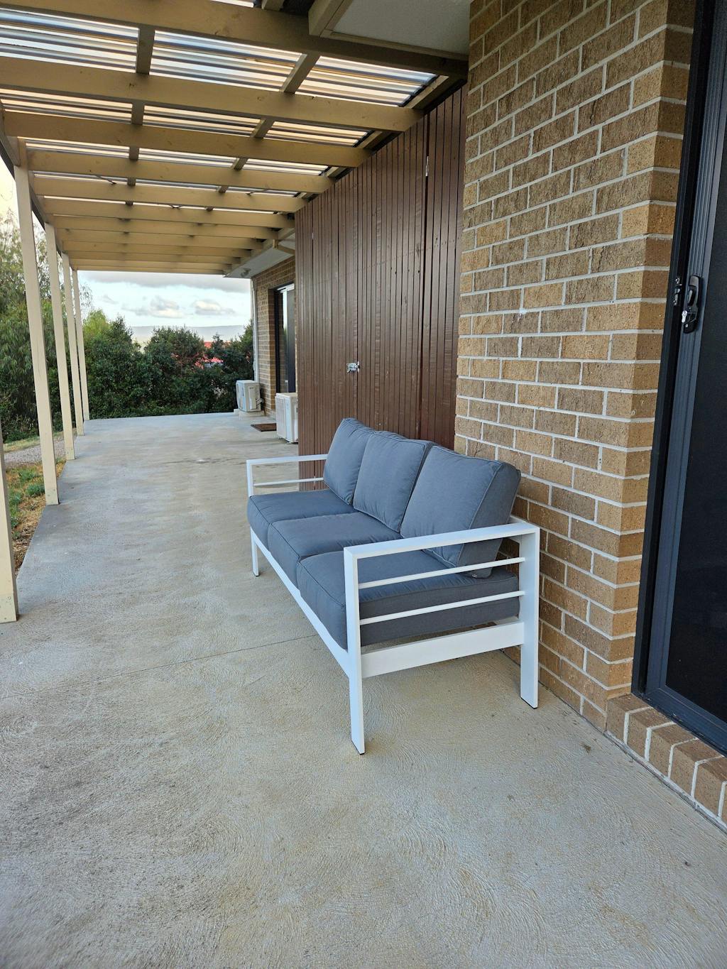 Paris 3 Seater White Aluminium Outdoor Sofa Lounge with Arms - Grey Cushion