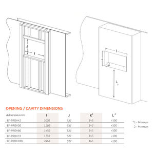 • Cavity Size – 121cm (W) x 15cm (D) x 53cm (H)