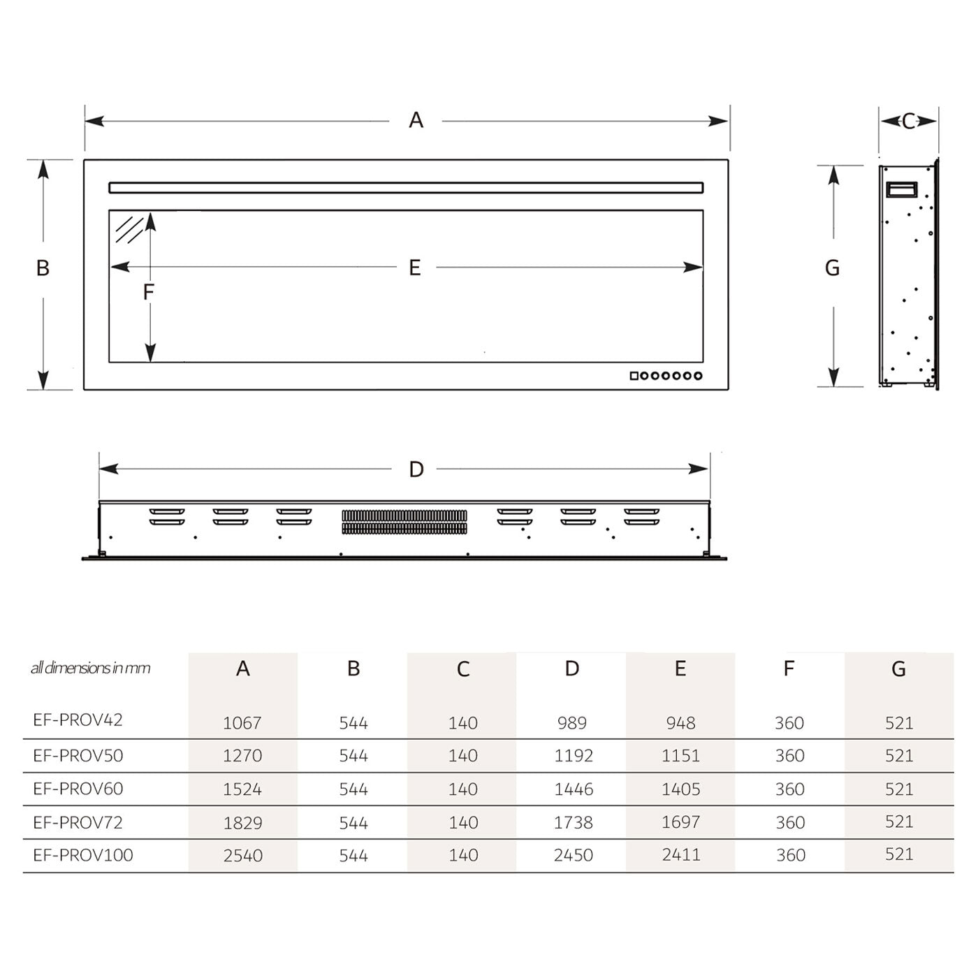 The Provence Series is designed with a continuous, edge-to-edge linear flame that flows naturally across the entire width of the fireplace, creating a balanced and immersive visual effect regardless of size.