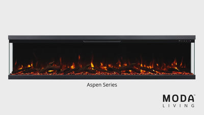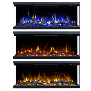 The Aspen 50 Inch Electric Fireplace features a stylish three-sided glass design with a tall 51.5 cm viewing window, creating a larger, more immersive flame display. Perfect for built-in recessed installation, this model delivers a seamless, integrated look while adding warmth and elegance to your living space.