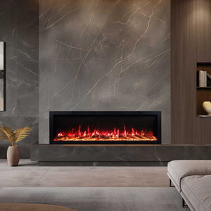 The Capriccio Series Electric Fireplace is designed with a narrower trim, maximizing the space for a larger flame display that becomes the true focal point of the room. This minimalist approach, combined with the 11-color downlighting system, allows you to customize the glow above the ember bed, adding a personal touch to the ambiance.
