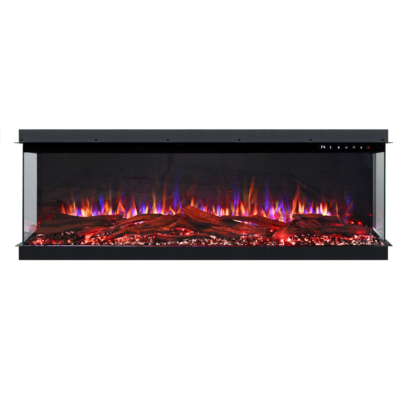 The Cascade Series Electric Fireplace offers a stunning 3-sided viewing experience, combined with the latest flame technology. Its translucent ember bed mimics the look of real burning embers with a breathing effect, adding to the authenticity. Control the fireplace easily via your smartphone or Amazon Alexa, and enjoy the cozy ambiance with built-in fire cracking sound.