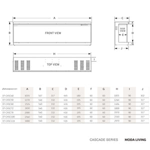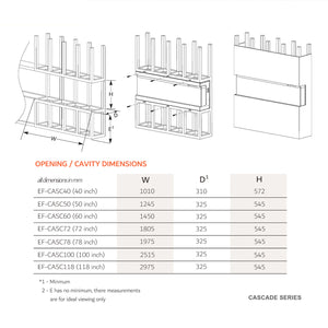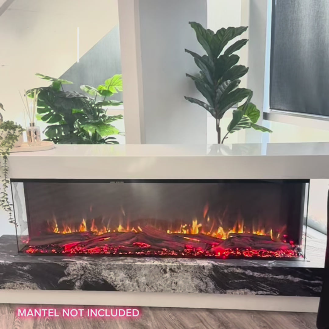The Cascade Series Electric Fireplace is designed to offer an impressive 3-sided viewing experience, allowing for multiple configurations that showcase the flames from the front, left, and right sides. With its extra deep profile, the fireplace creates a fully immersive flame display, ideal for any room looking for warmth and elegance. Its recessed installation integrates smoothly into walls, providing a modern, streamlined look.