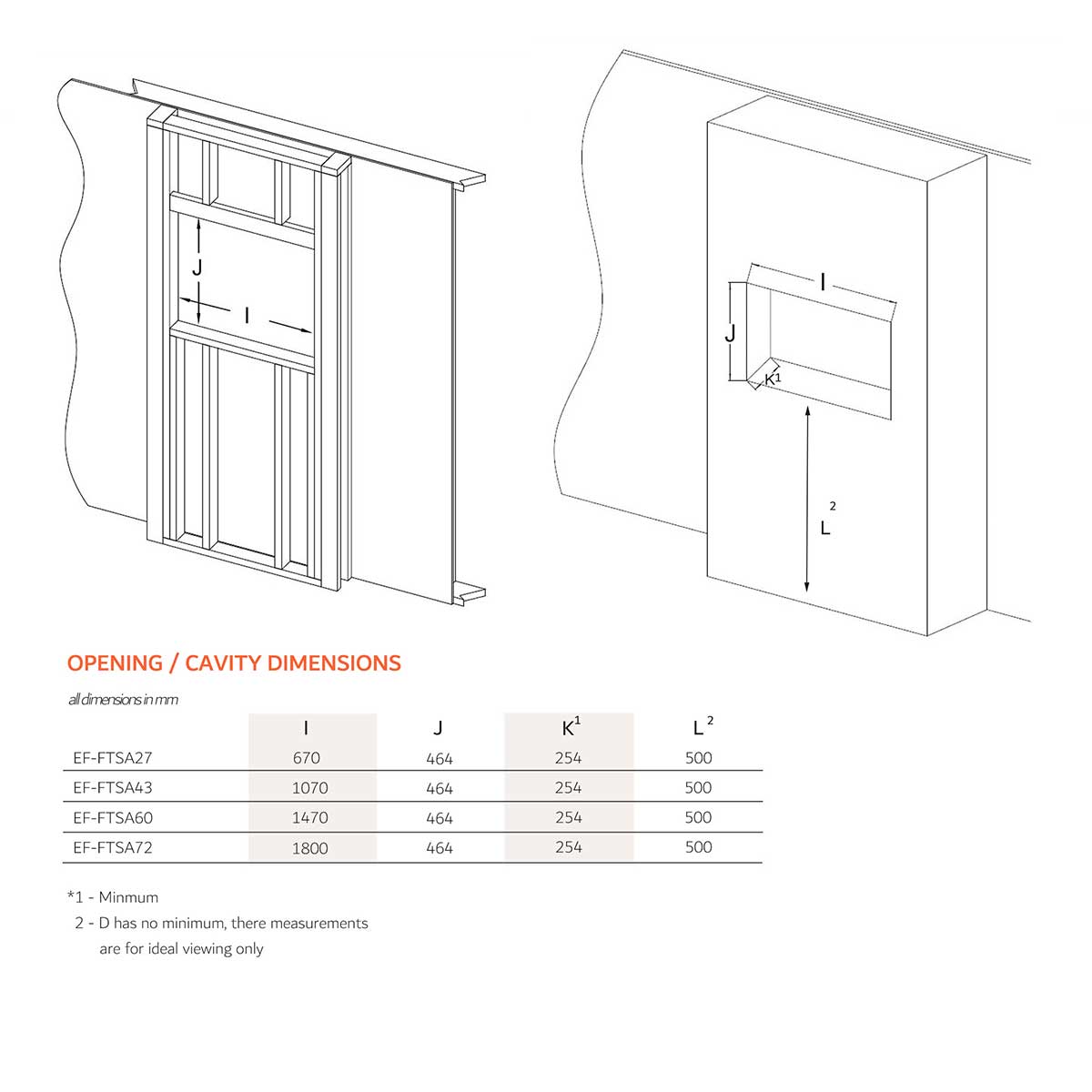 • Cavity Size - 147cm(Width) x 25.4cm(Depth) x 46.4cm(Height);