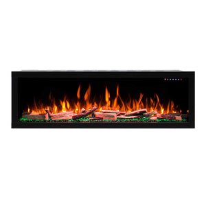 The Fantasia Series Electric Fireplace stands out with its extra deep design, offering a realistic and immersive fireplace experience. It features large, freely placed logs for customization and adjustable flame speed. With touch buttons, smartphone app control, and a remote control, you can easily manage temperature settings, lighting effects, and more. The fireplace also includes a hidden vent for seamless heating performance.