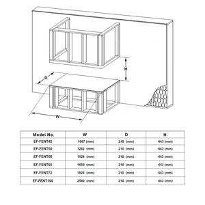 • Cavity Size - 165cm(Width)x21cm(Depth)x44.3cm (Height);