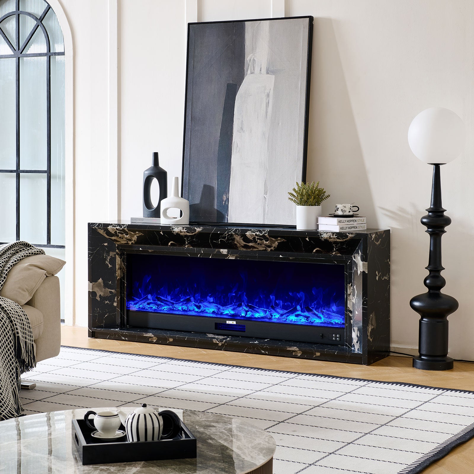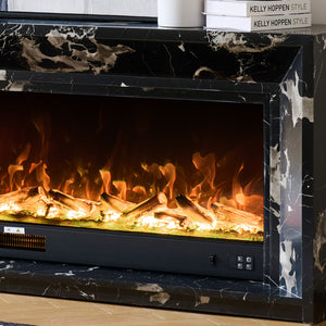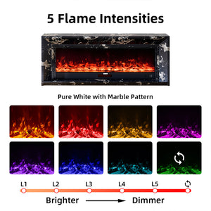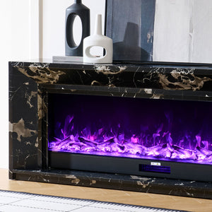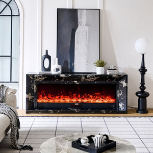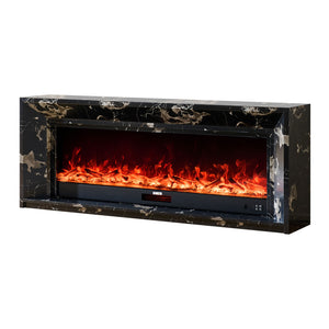 Marquess 60" Electric Fireplace with Black Marble Veneer Mantel Suite - Smartphone Control
