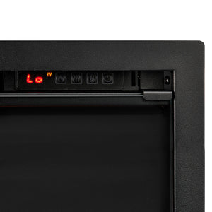 The Nocturne 1500W Electric Fireplace is designed with a slim profile, standing only 34 cm tall. This makes it appear sleek and elongated, offering a modern, space-saving look that is perfect for recessed installation beneath a television.