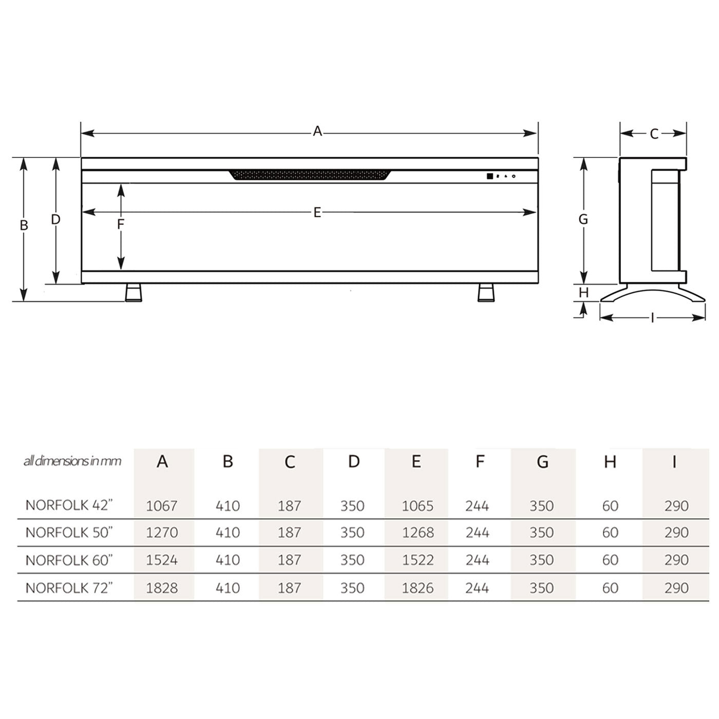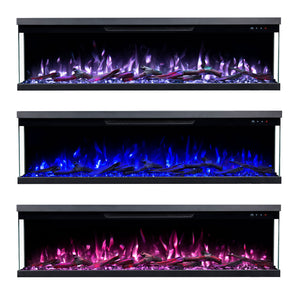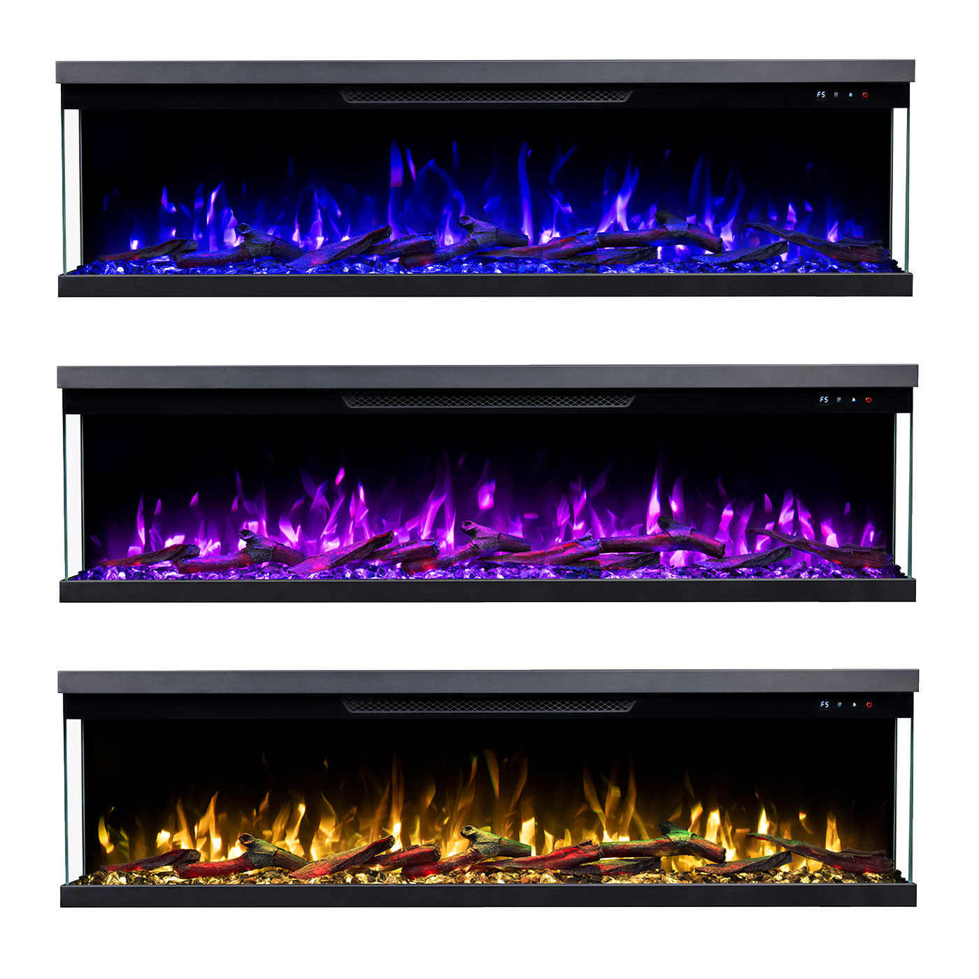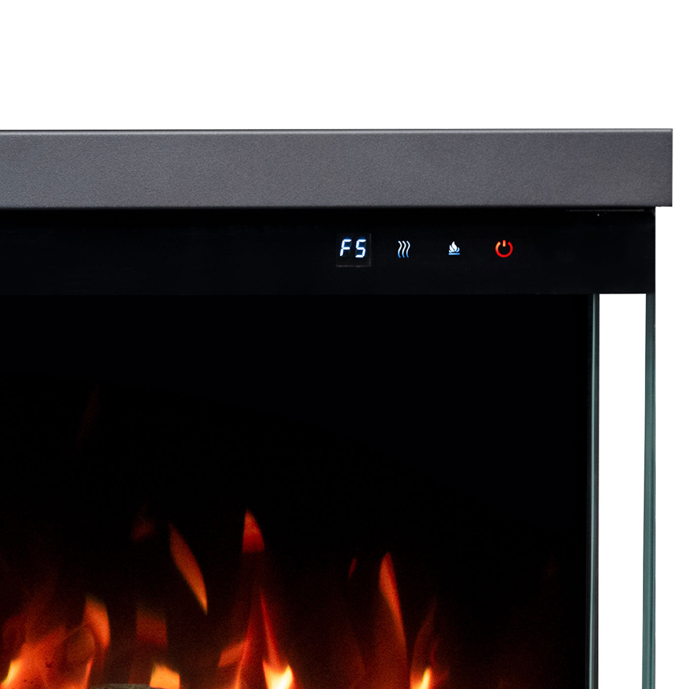 The Norfolk 50 Inch Electric Fireplace features a contemporary three-sided glass design with four viewing configurations to perfectly match your space: