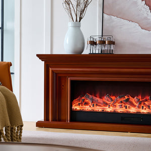 The Verona Electric Fireplace Heater Suite blends contemporary proportions with rich texture. This wide-format version features a brown mantel with natural wood grain finish, adding a sense of warmth and character to your space. Paired with a 50-inch Orion Electric Fireplace Insert, it offers powerful heating, customisable flame effects, and seamless smart control for a refined and inviting atmosphere.