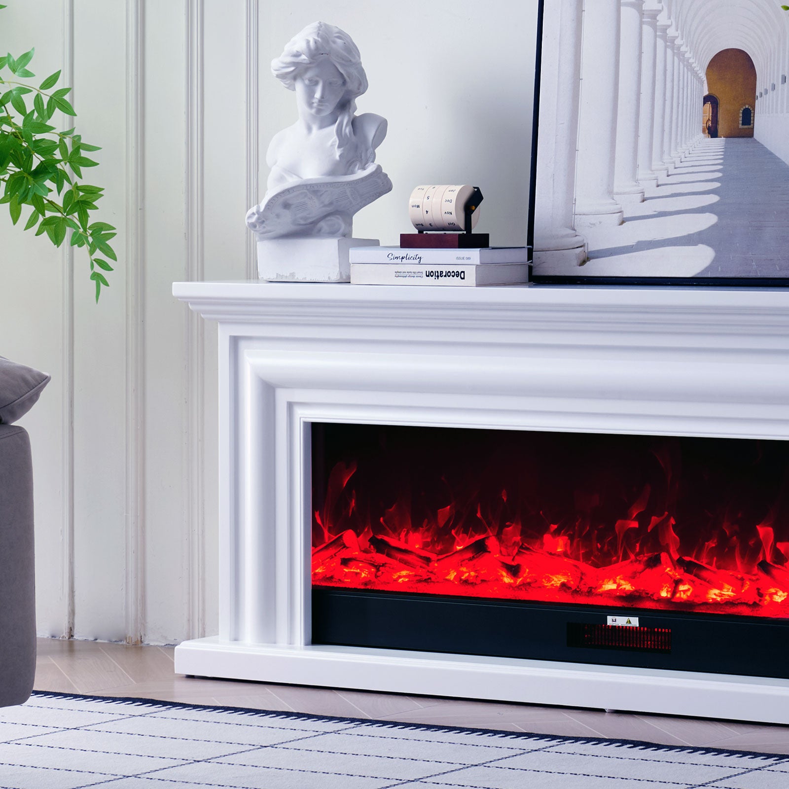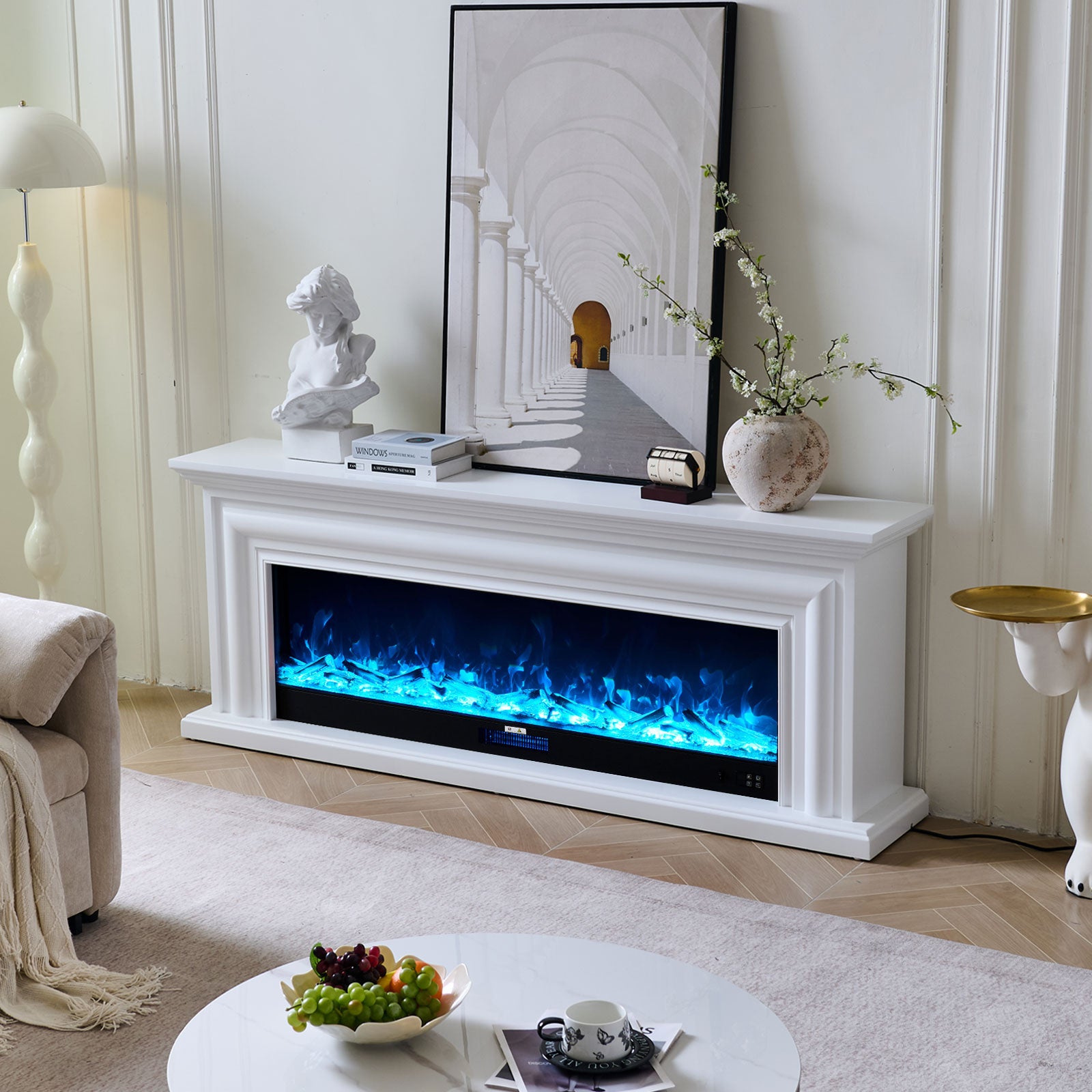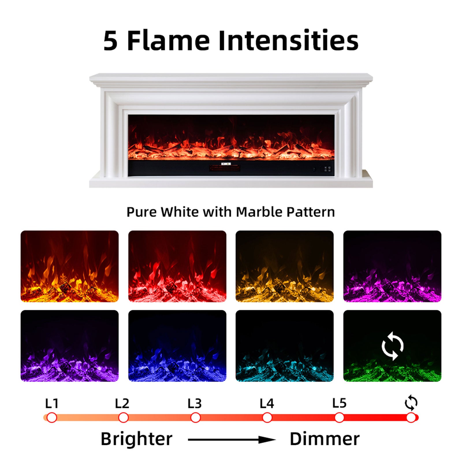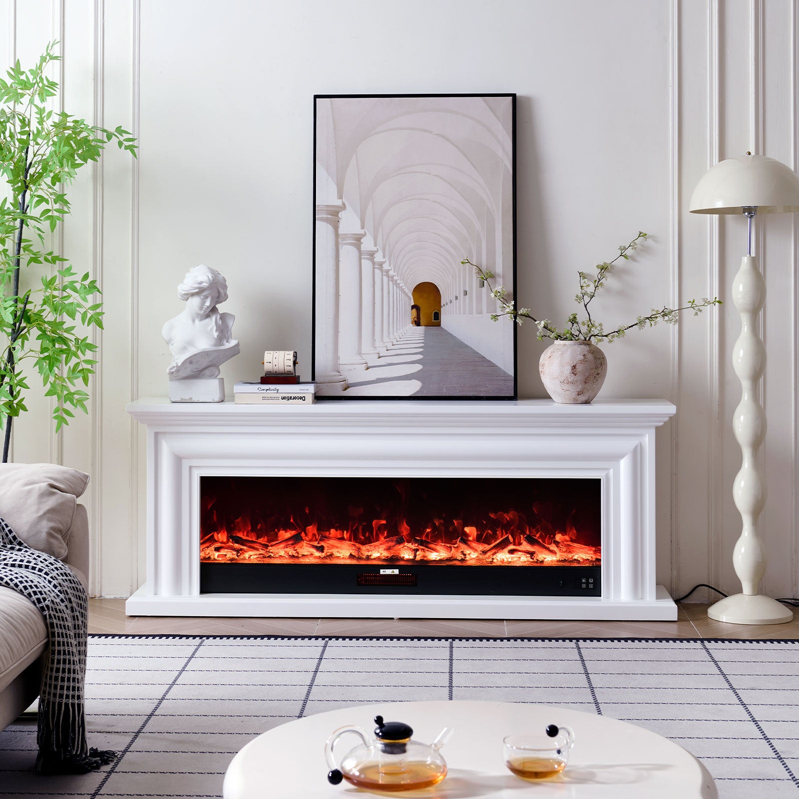 Make a bold statement with the Verona 60" Wide Electric Fireplace Suite. Featuring a sleek white mantel and a 60" smart-controlled fireplace insert, it delivers powerful heating, lifelike flames, and convenient app or remote control, perfect for larger spaces with modern style.