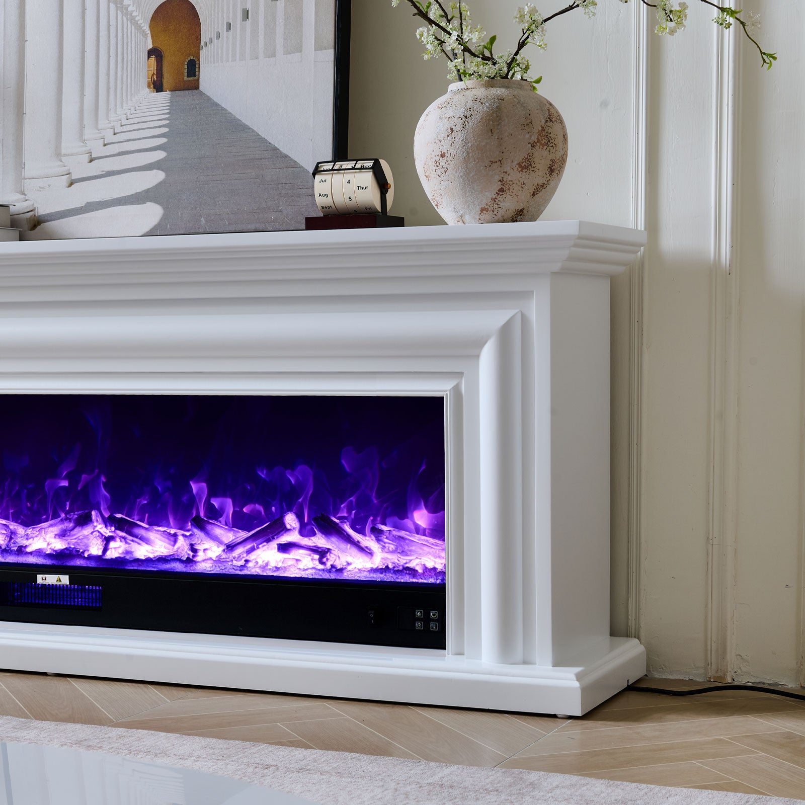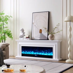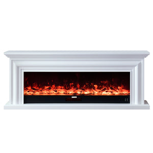 Verona 60" Wide Electric Fireplace Heater White Mantel Suite - Smartphone Control (SKU: EFCM360W-EFCM60A)