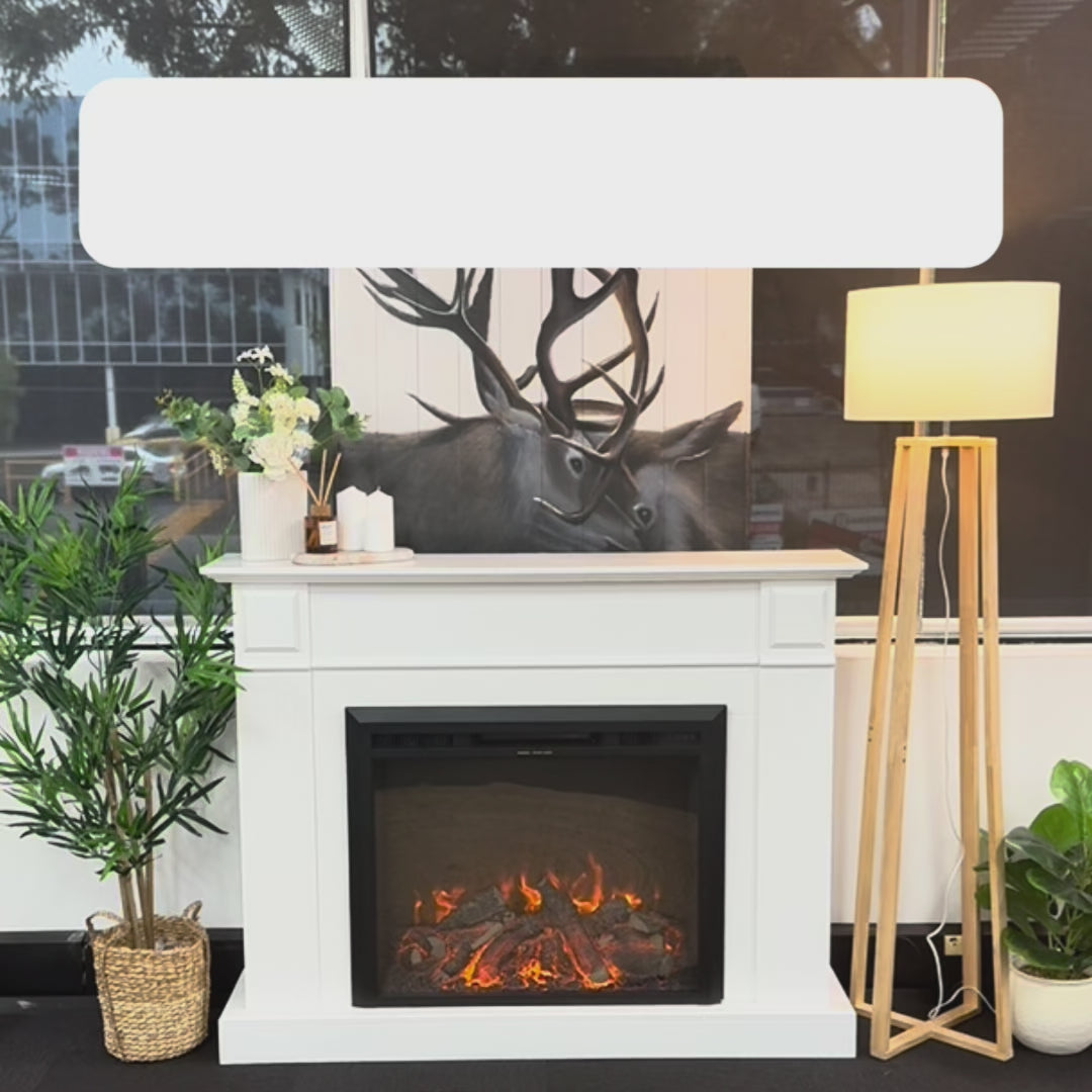 Upgrade your space with the elegant Berwick Fireplace Suite, featuring a sleek white mantel and the 30" Starlight insert. Enjoy 3D flame effects with 3 color options, adjustable brightness, flame speed settings, and crackling sounds for a cozy ambiance. With smartphone control, thermostat, two heat settings, and a timer (1-8 hours), it offers convenience and warmth. Safe, energy-efficient, and easy to install, it’s the perfect blend of style and functionality for any room.