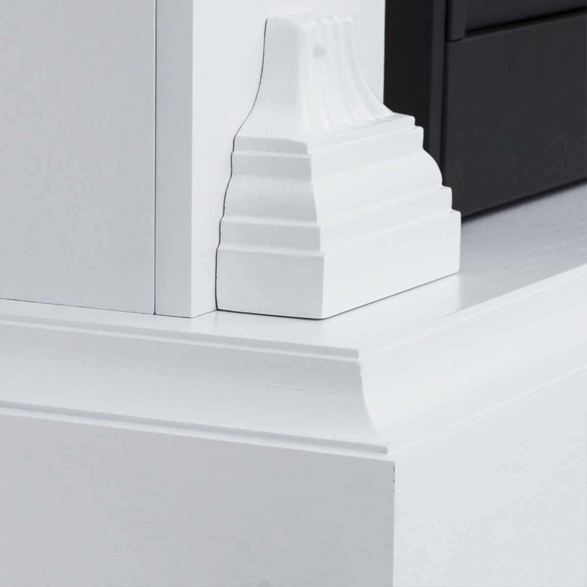 Bring warmth and elegance to your home with the Cove Electric Fireplace Suite. Featuring a sophisticated white mantel with timber veneer and the upgraded 30" New Moonlight Insert, it offers a larger viewing area, six flame colours, adjustable ember bed lighting, flame speed control and crackling sound effects. Combined with efficient heating, thermostat control and smartphone operation, Cove delivers year-round ambience with modern convenience.