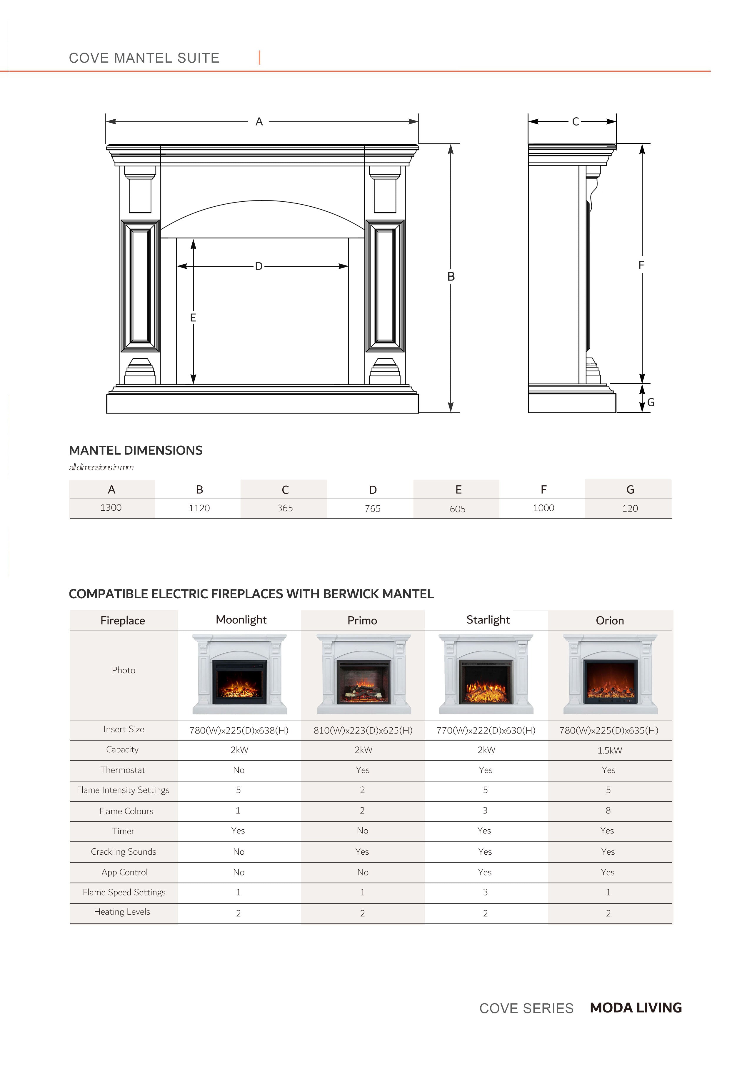 • Includes the COVE Mantel and 30 inch PRIMO Insert