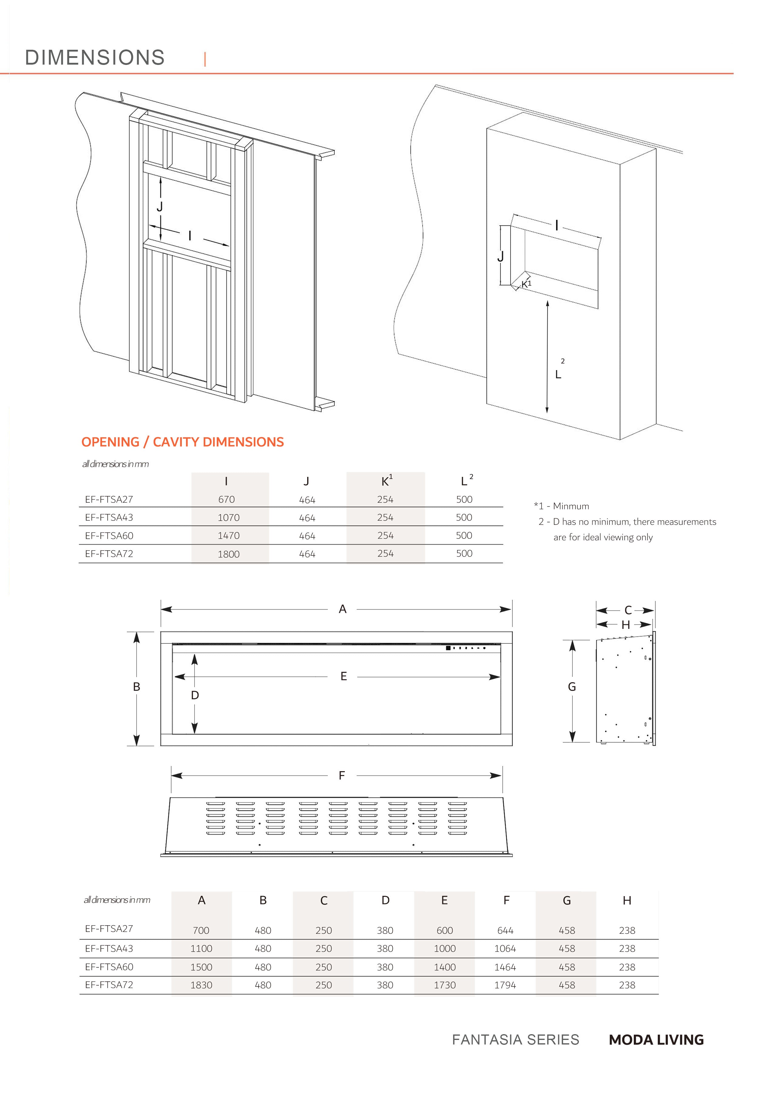 • Designed with front flow heating with hidden venting, The venting is located at the top of the unit allowing heat to cascade down in front of the glass.
