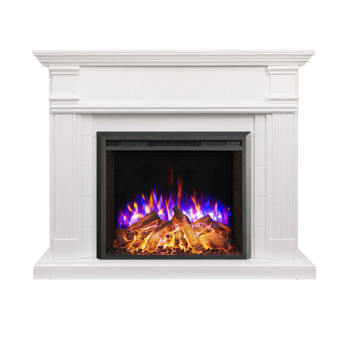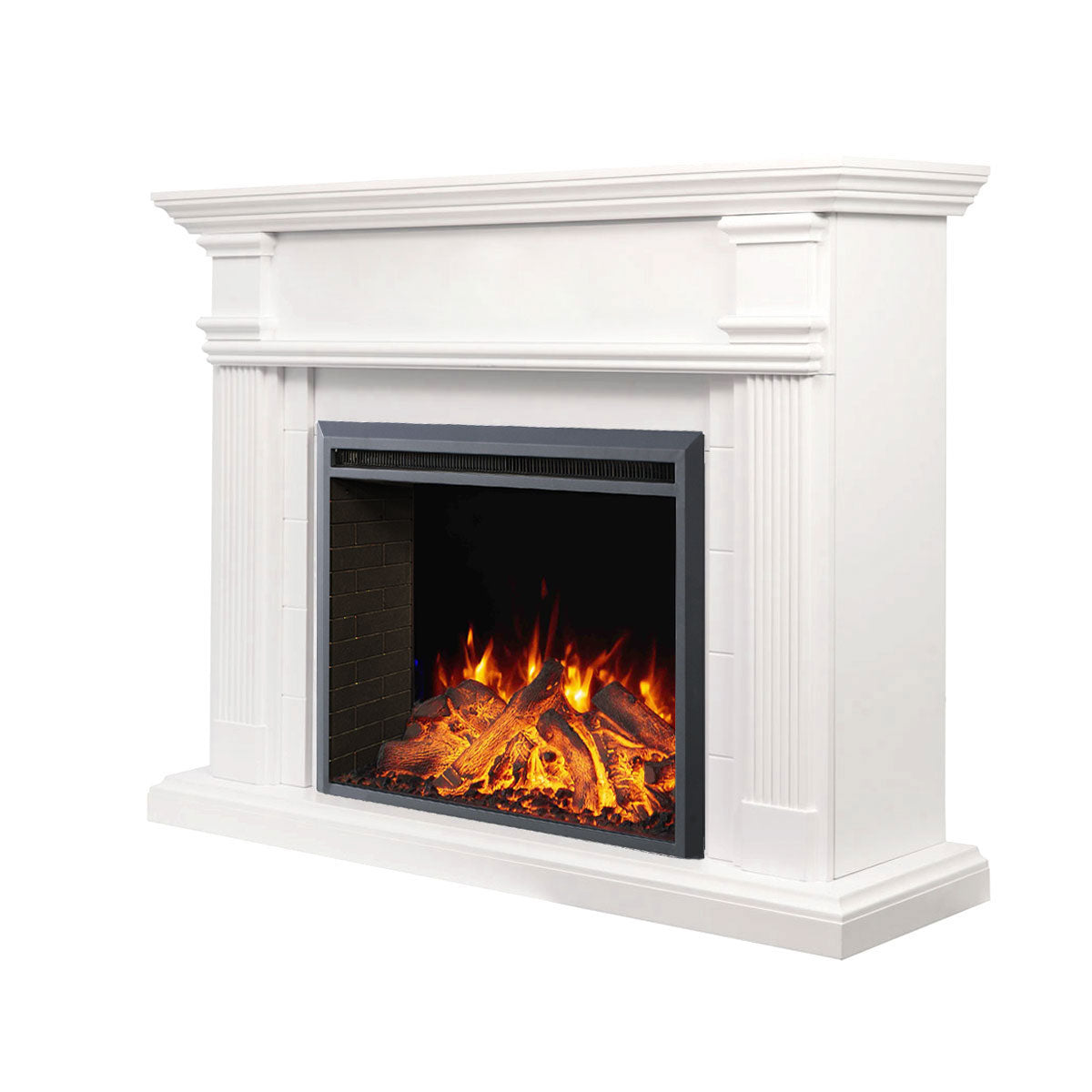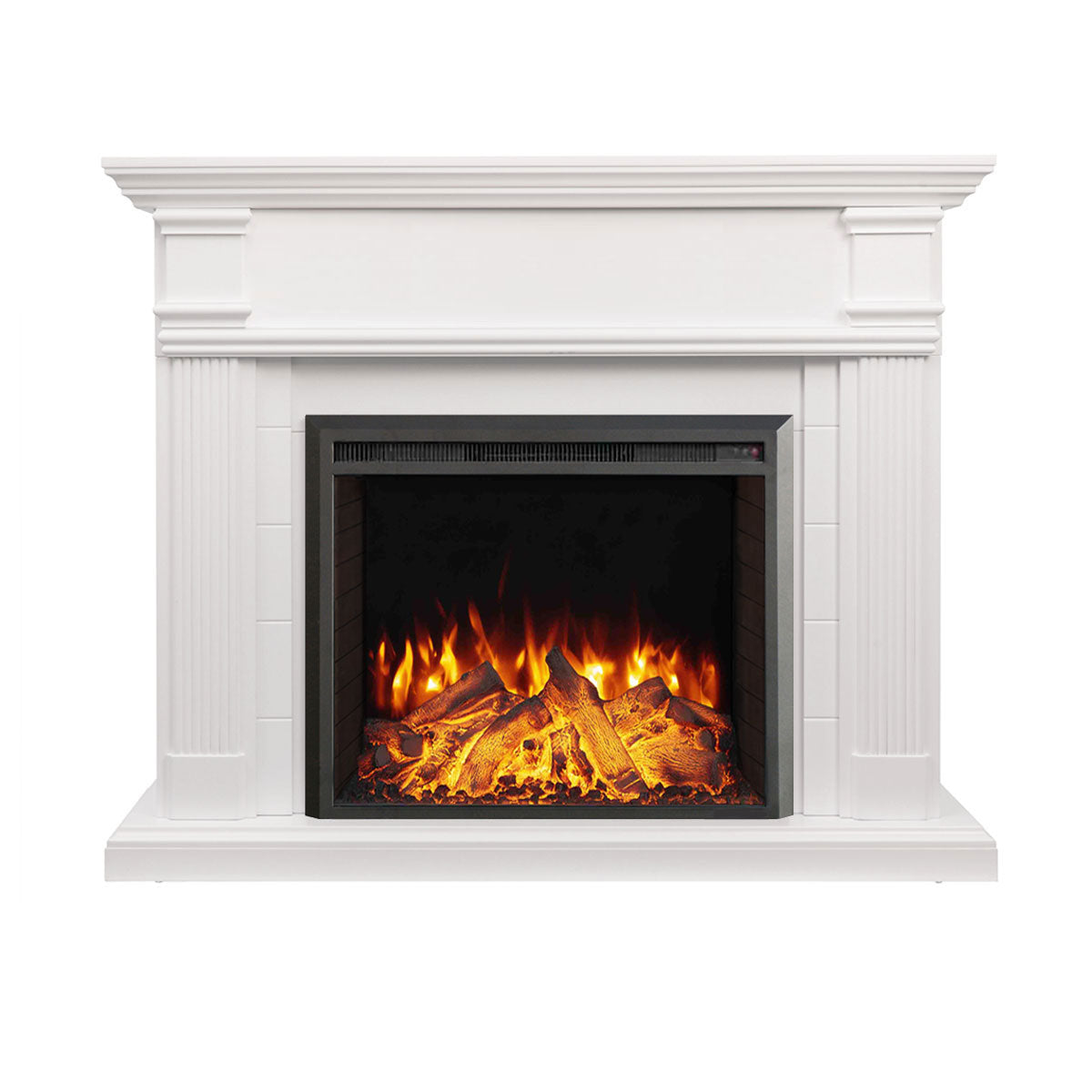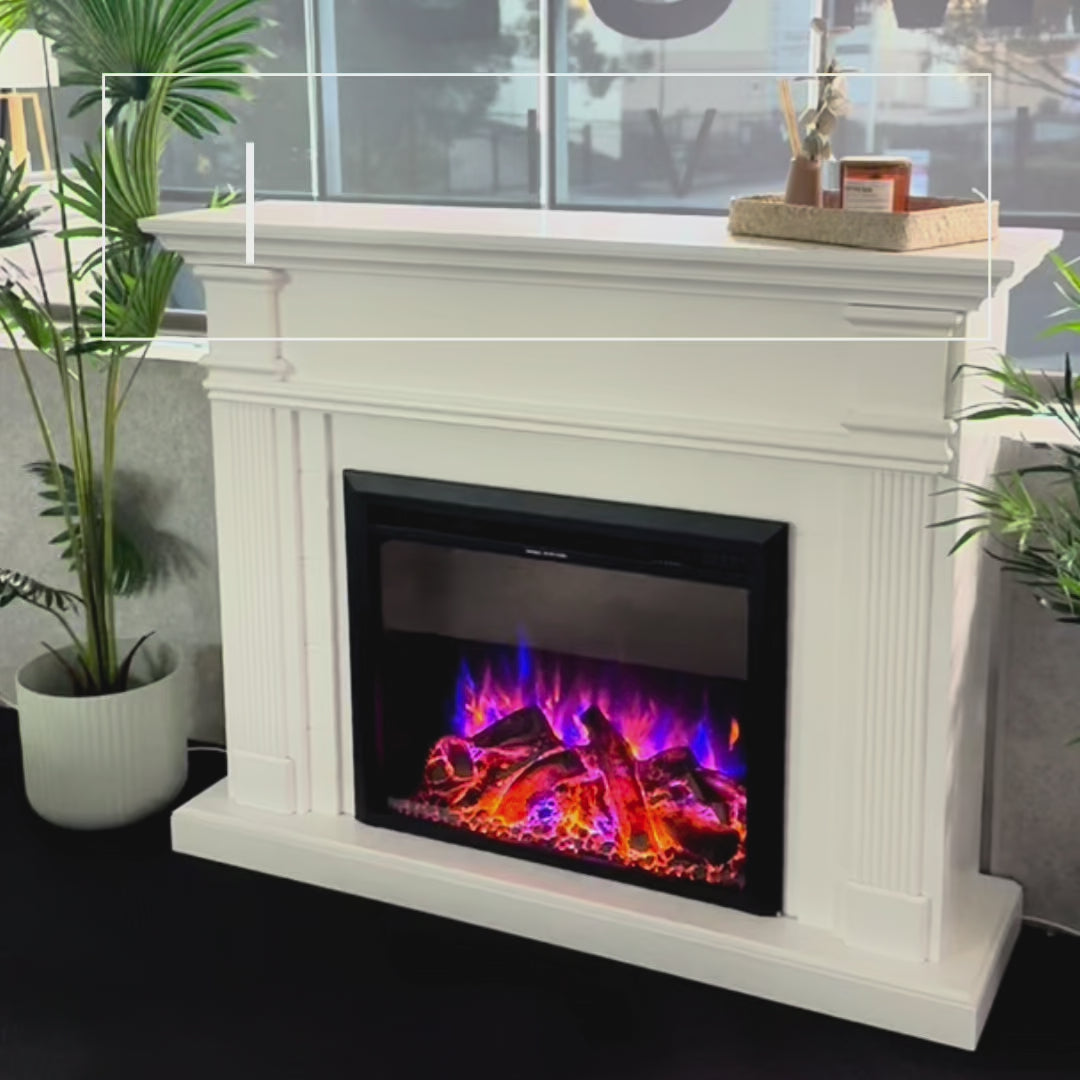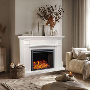 Elevate your home with the George Fireplace Suite, featuring a timeless white mantel and the advanced 30" Starlight insert. Enjoy 3D flame effects with 3 color options, adjustable brightness, flame speed settings, and crackling sounds for a cozy atmosphere. With smartphone control, thermostat, two heat settings, and a timer (1-8 hours), it offers warmth, elegance, and convenience. Safe, energy-efficient, and easy to install, it’s the perfect addition to any space.