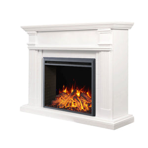 Add style, warmth and modern convenience to your home with the George Electric Fireplace Suite. Featuring a sophisticated white mantel and the advanced 30" Starlight electric fireplace insert, it delivers a stunning 3D flame effect, life-like logs and multiple flame colours. Easily adjust flame colour, brightness, flame speed, sound, heat and timer from your smartphone via the Tuya Smart app, or use the included remote control. Enjoy the ambience of the flames with or without heat, making it perfect for year-round comfort.