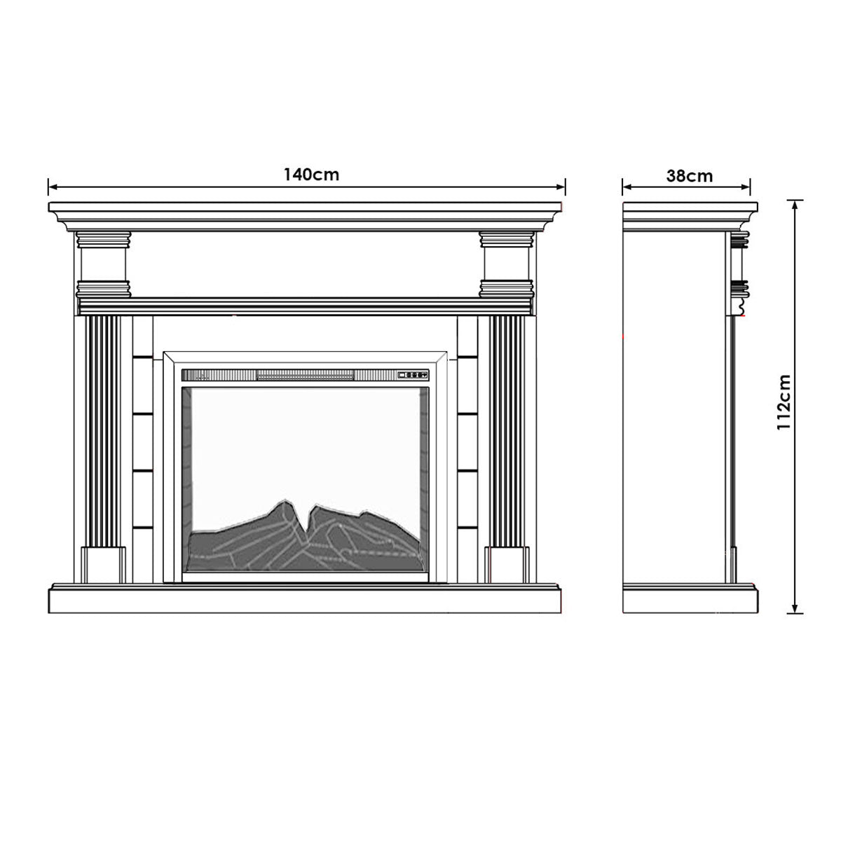 • Fireplace Suite Dimensions: 140W x 38D x 112H cm