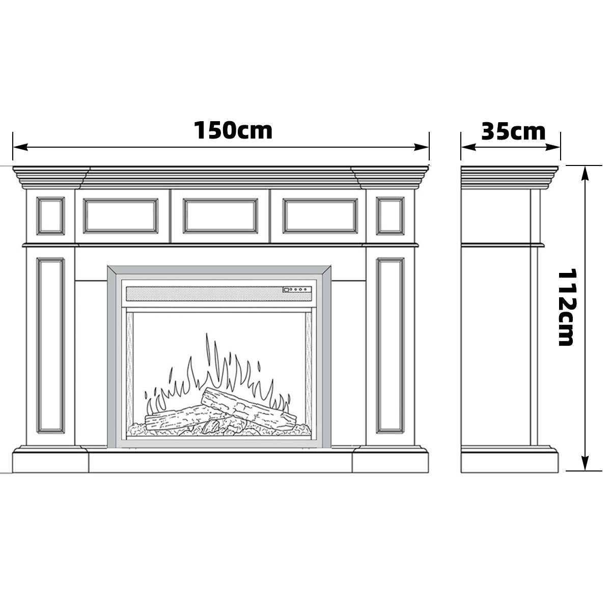 • Fireplace Suite Dimensions: 150W x 35D x 114H cm