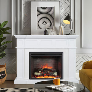 Transform your space with the Hudson Fireplace Suite, featuring a sophisticated white mantel and the 30" Primo insert. Enjoy realistic 3D flame effects, two flame colors (orange or orange-blue), adjustable brightness, and six crackling sound effects. With two heat settings, a thermostat, and remote control, it provides warmth, ambiance, and convenience. Easy to install and certified for safety, it's the ideal centerpiece for any room.