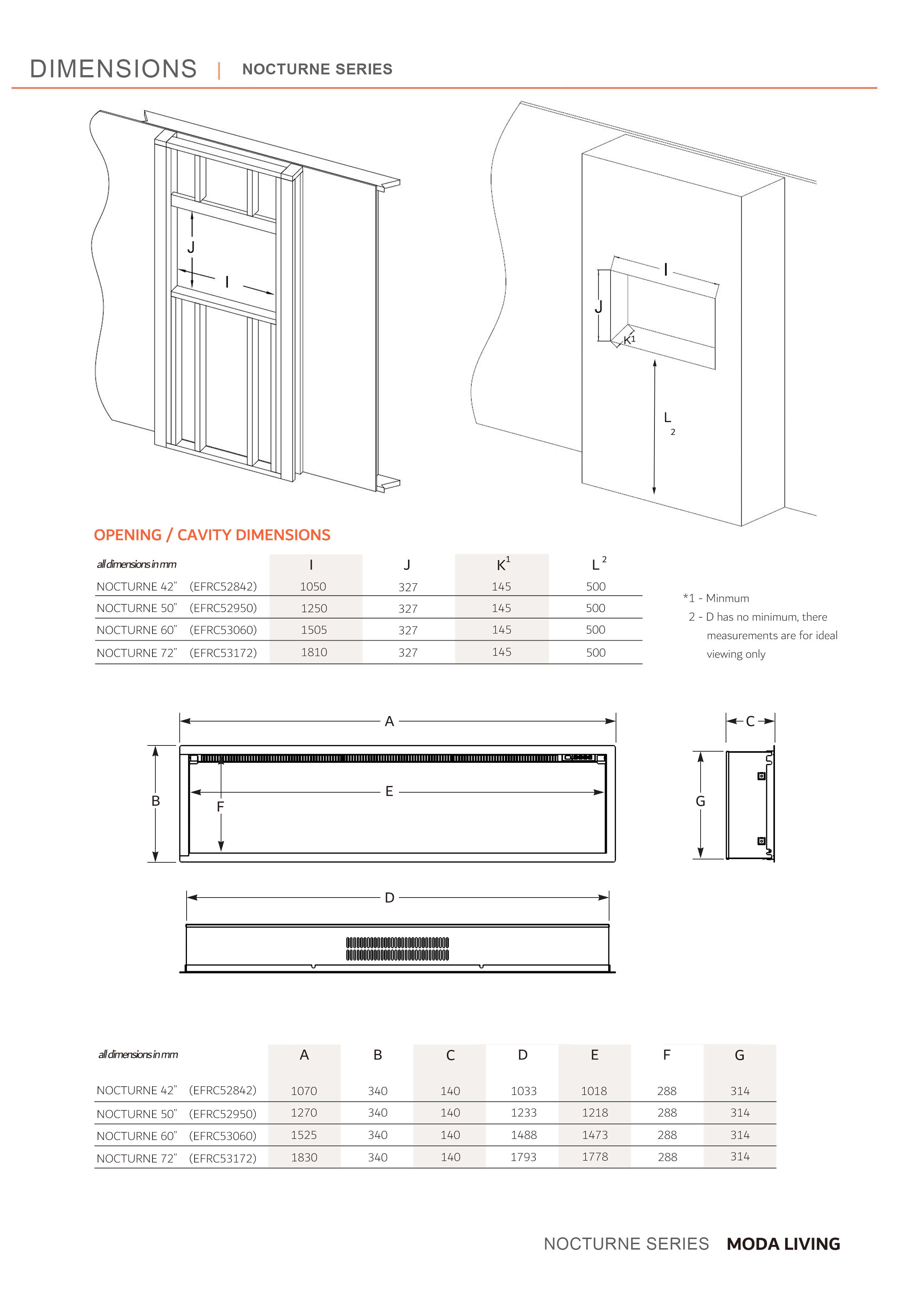 The Nocturne Electric Fireplace offers a sleek, ultra-slim design at just 34 cm in height, ideal for recessed installations beneath TVs. It provides a customizable experience with flame color options, adjustable brightness, and dual heating levels.
