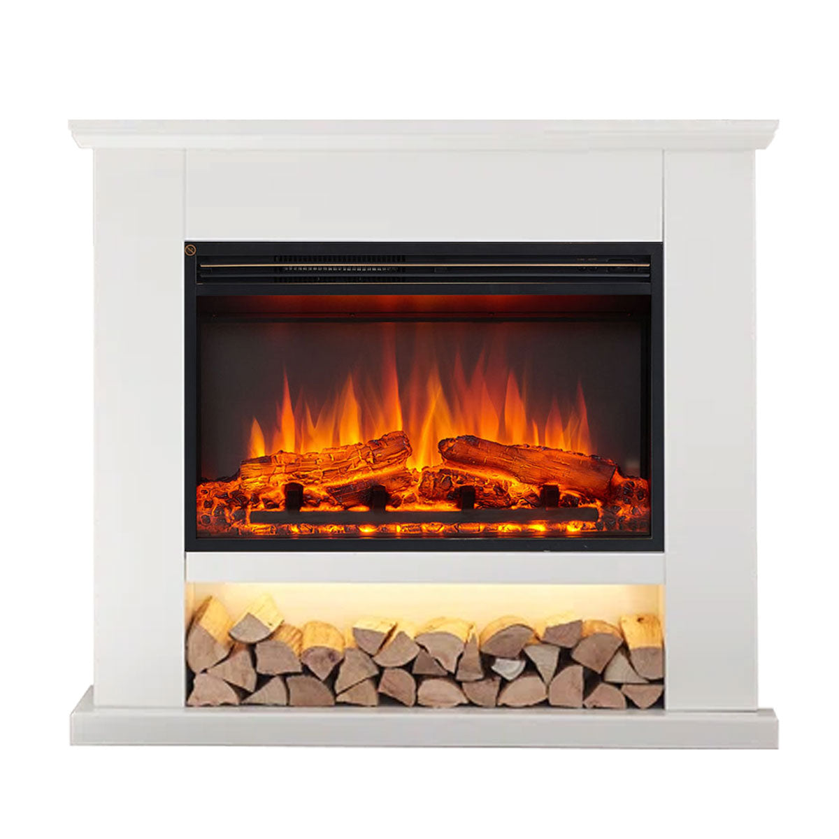 Please note: The decorative wood logs shown in the storage area are for illustration purposes only and are not included.