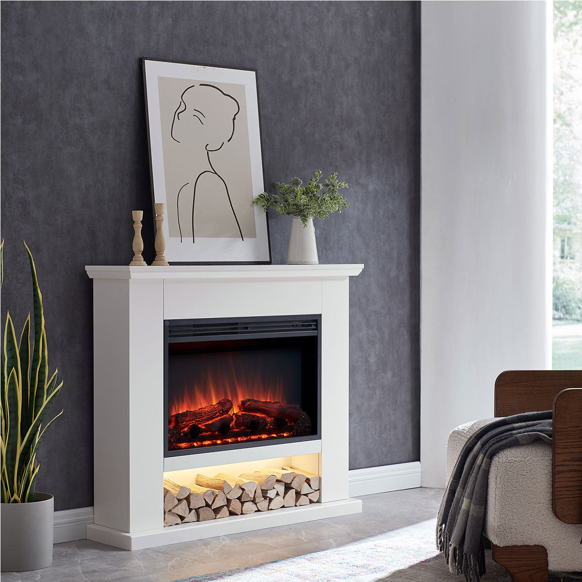 Powered entirely by LED lighting, the fireplace delivers stunning visuals with minimal energy use.