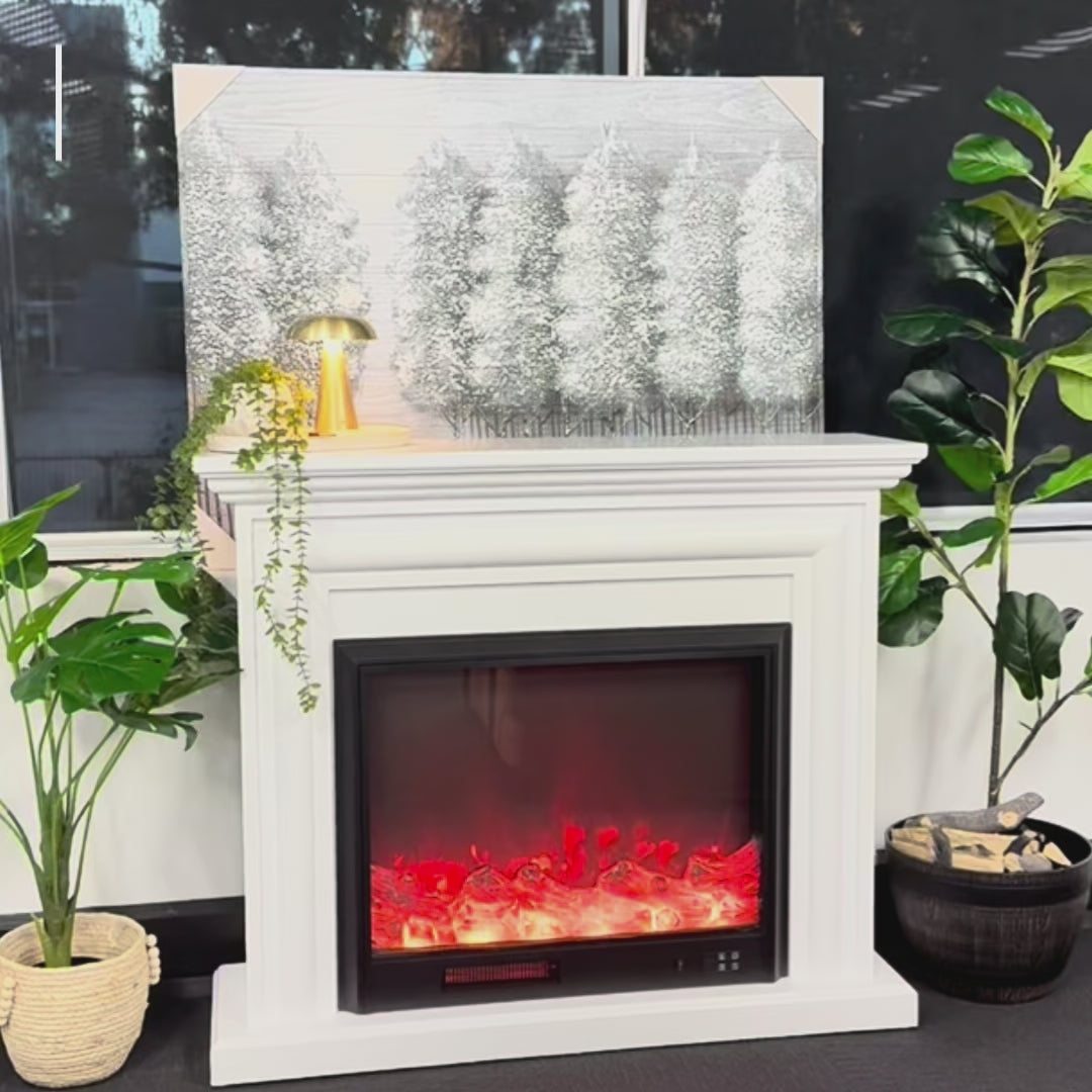Bring warmth and elegance to your home with the Verona Electric Fireplace Suite. Featuring a crisp white mantel and a 30" smart-controlled fireplace insert, this beautifully crafted unit offers realistic flame effects, dual heat settings, and convenient app or remote control – all fully assembled and ready to transform your space.