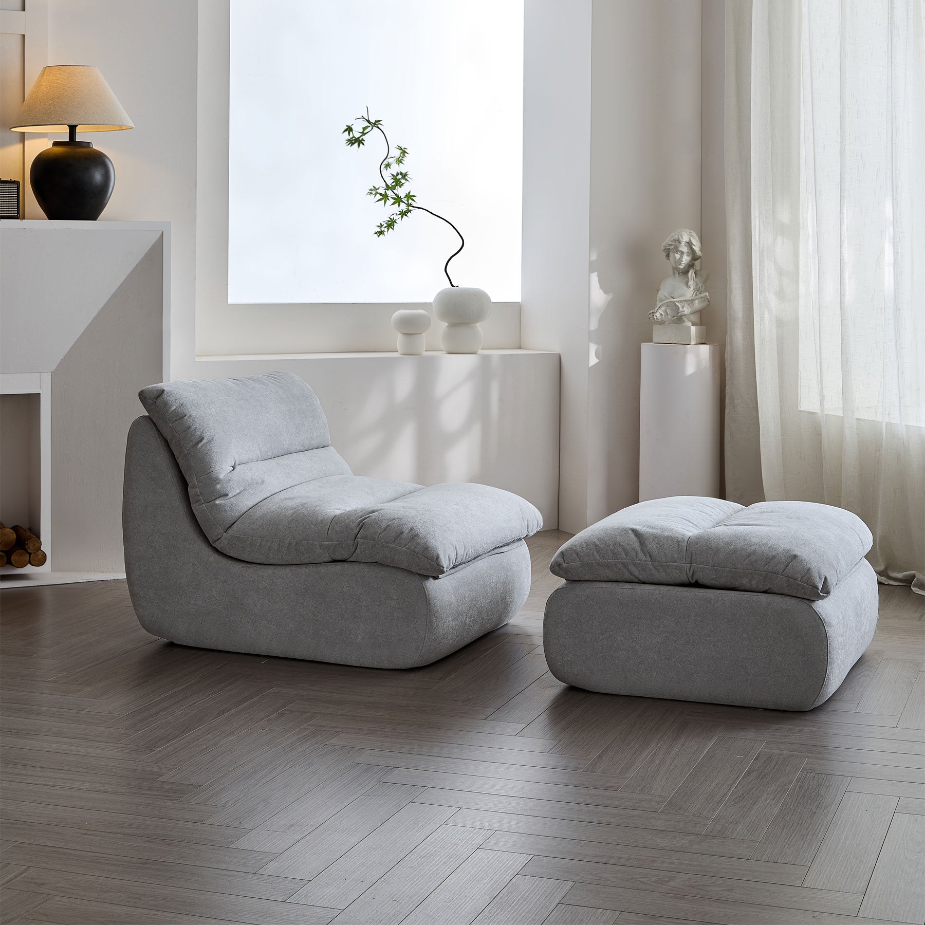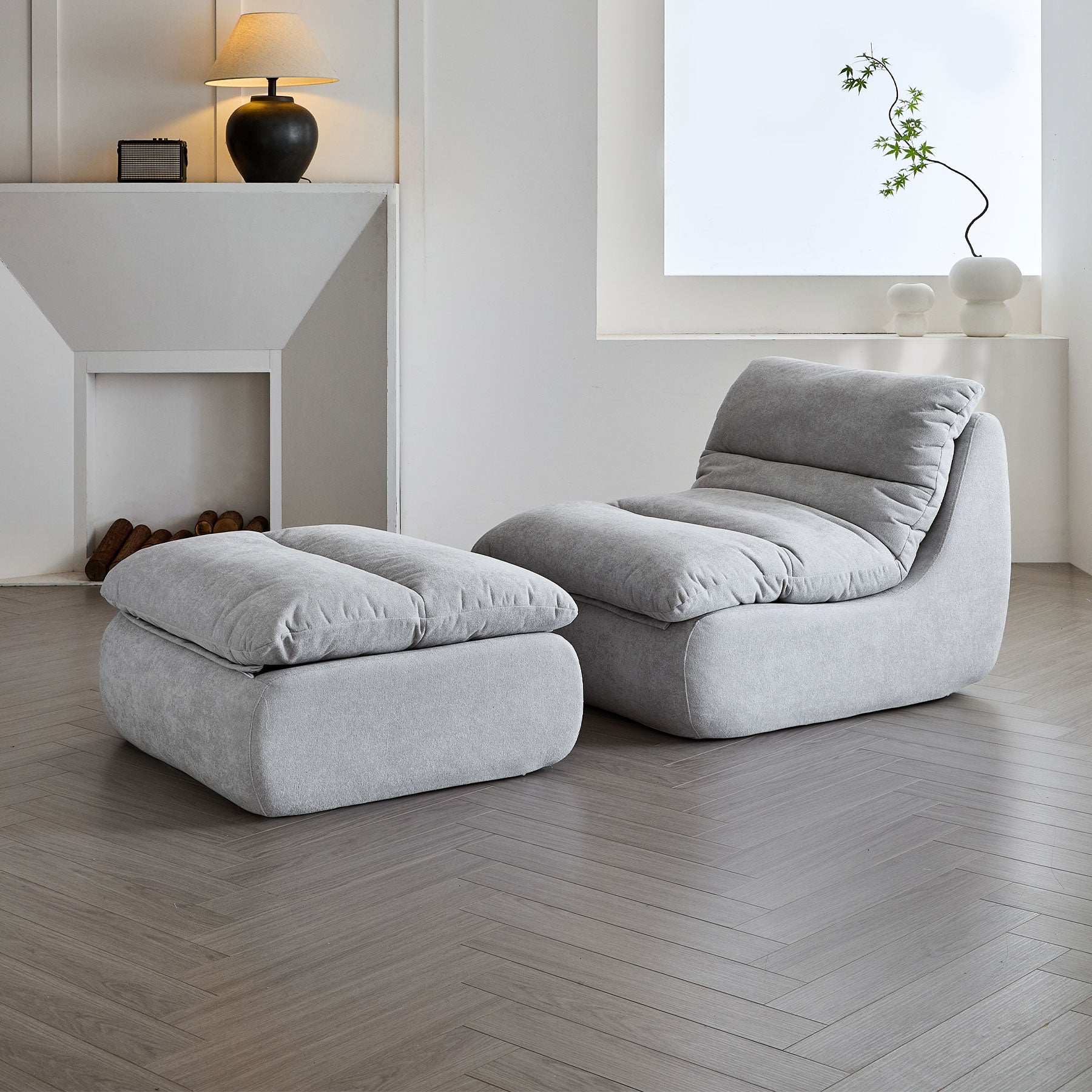 Sink into softness with the ARCHER Lounge Chair & Ottoman Set. Upholstered in cozy pebble grey flannel and built with full high-density foam, this ergonomic duo offers cloud-like comfort—no assembly required, just unpack and relax.