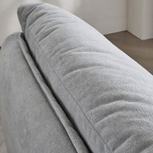 These sofas come in various styles—from minimalist to sculptural—with fabric options like teddy velvet, flannel, and corduroy in modern neutral tones.