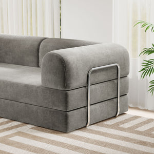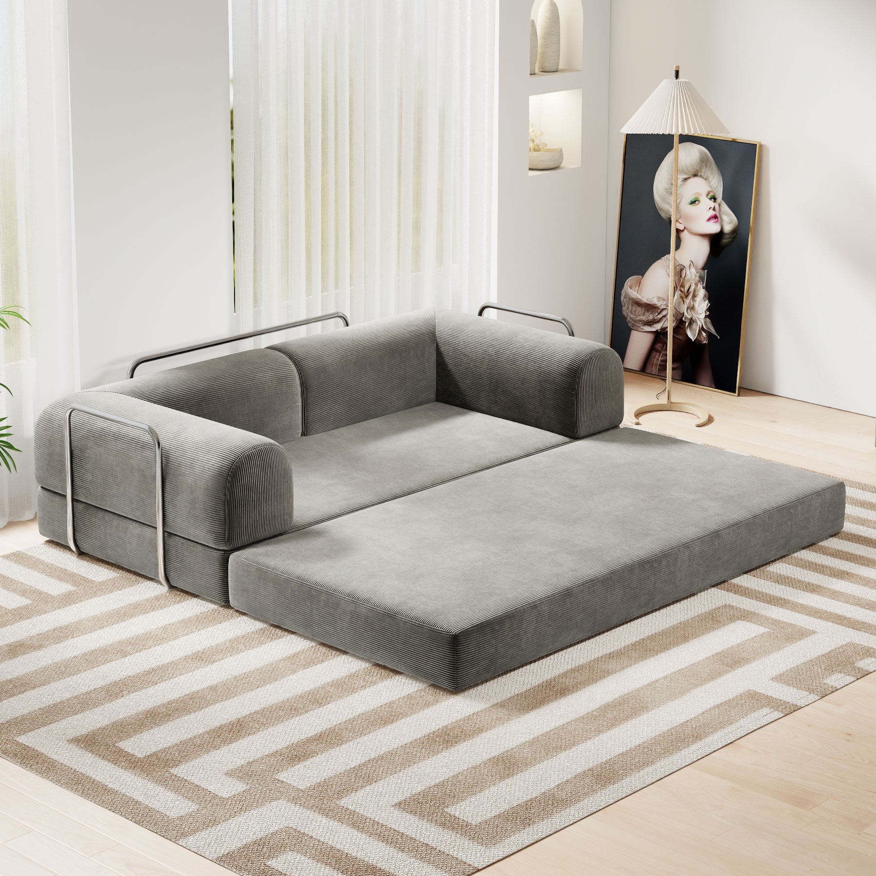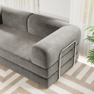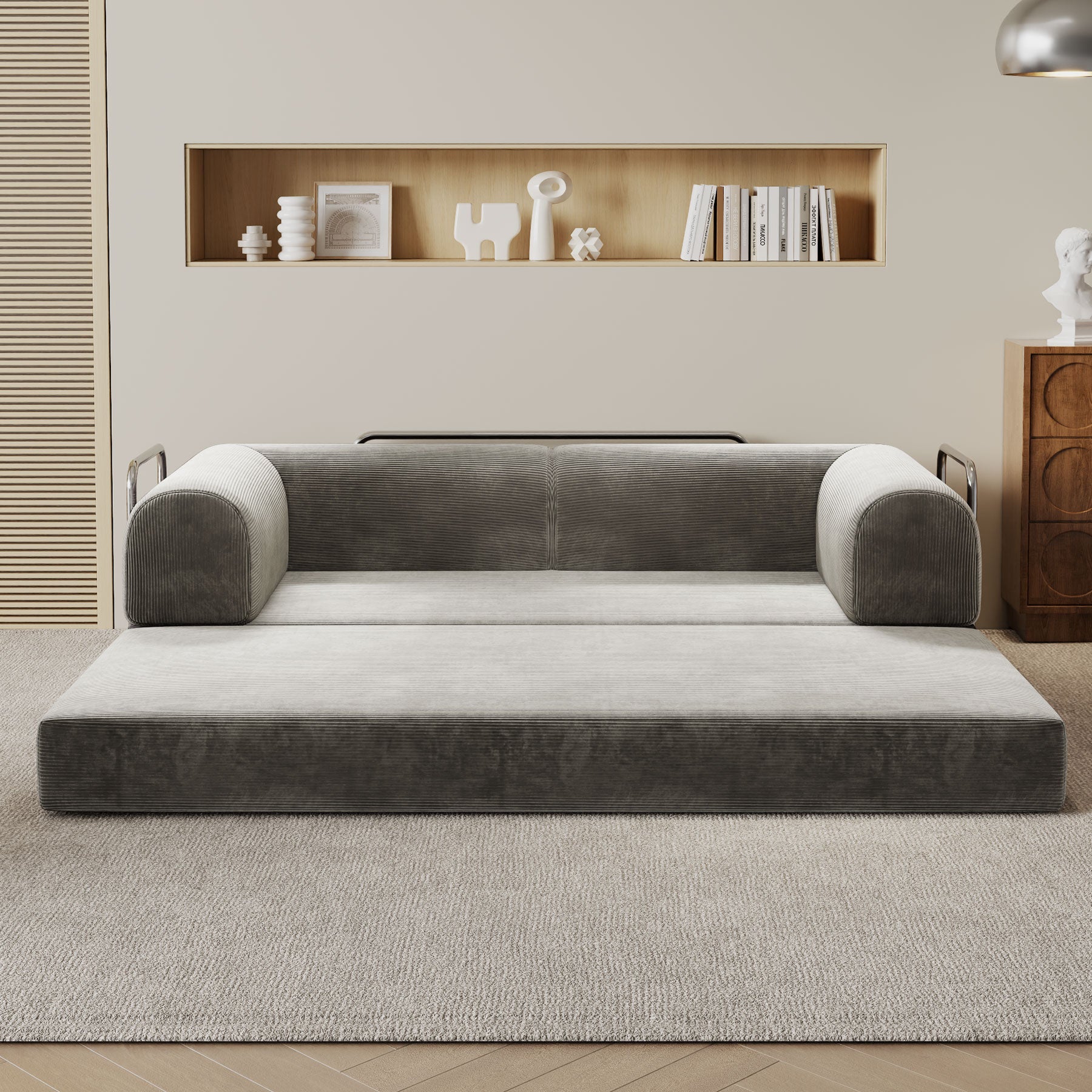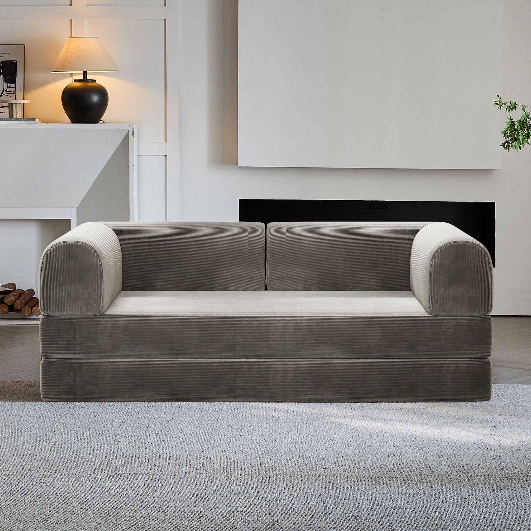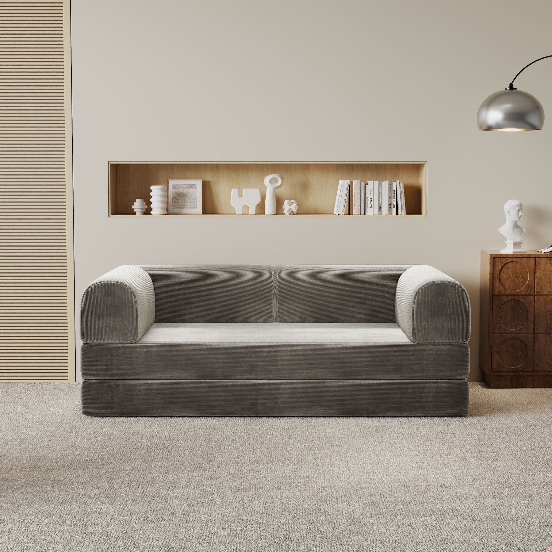 Malone Compression Sofa Bed - Convertible Corduroy Couch in Pebble Grey