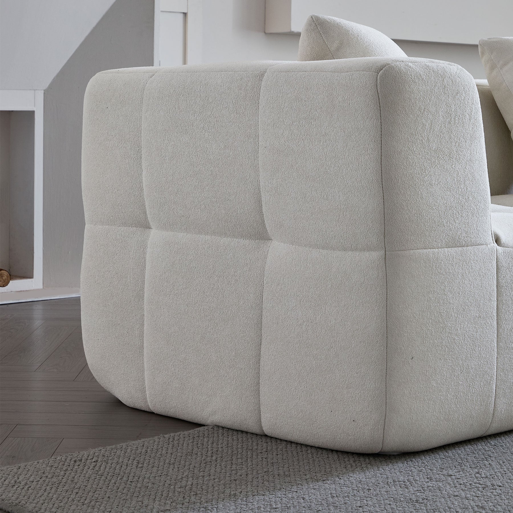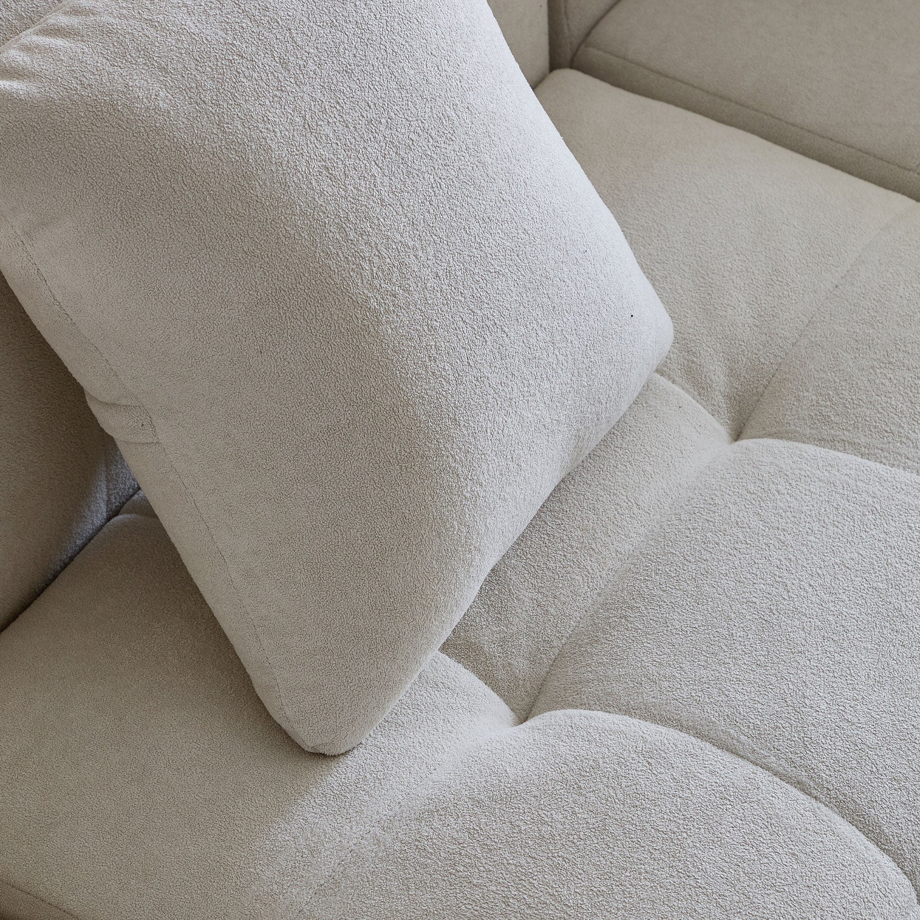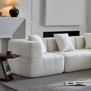 The Sorrento Modular Sofa 3 Seater redefines modern living with its sculptural lines and cozy form. Wrapped in soft beige flannel, this design-led piece features oversized grid stitching and a full foam core for cloud-like comfort. Built with no internal frame, it maintains a seamless silhouette while offering reliable support.
