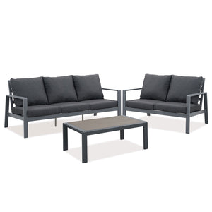 Florence 3+2 Seater Charcoal Aluminium Sofa Lounge Set - Dark Grey Cushion