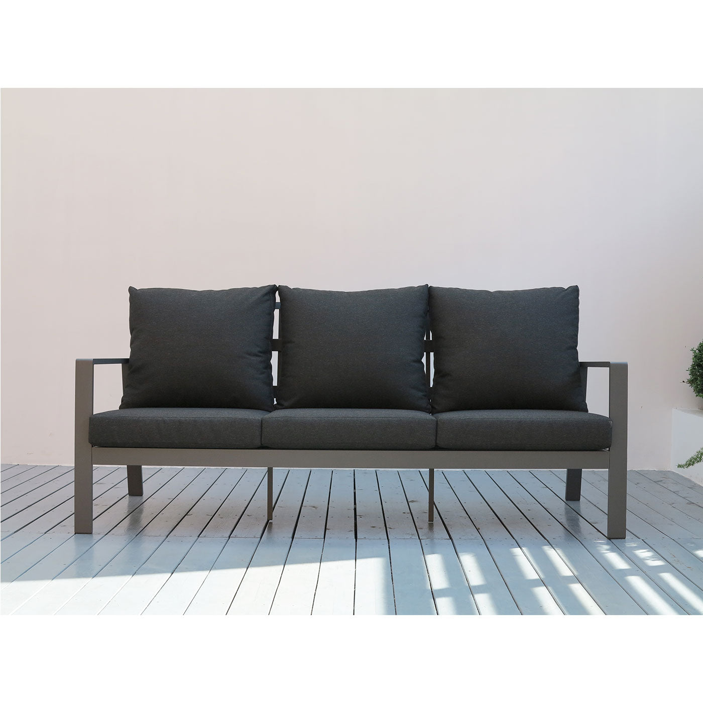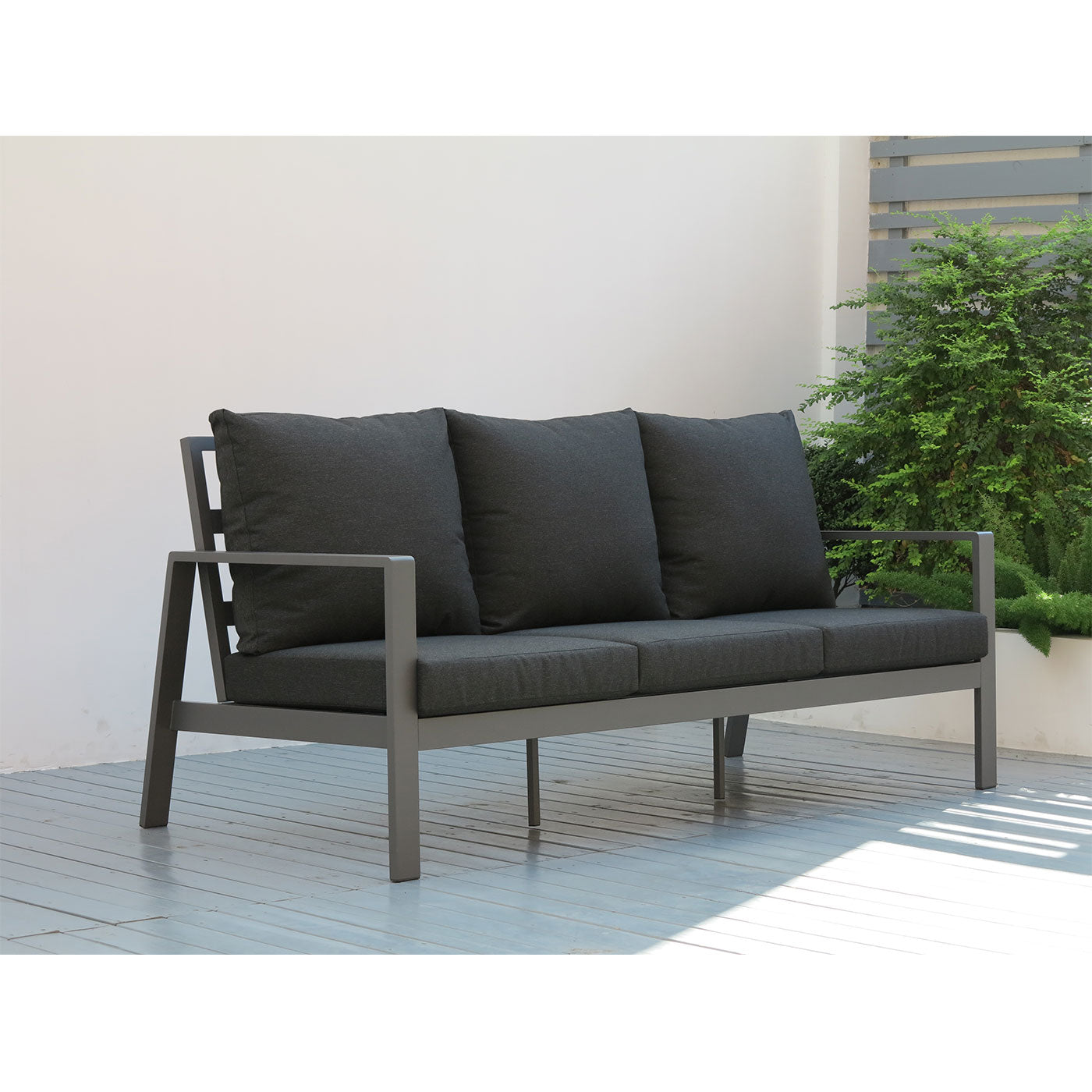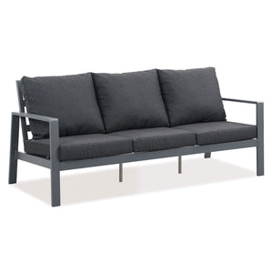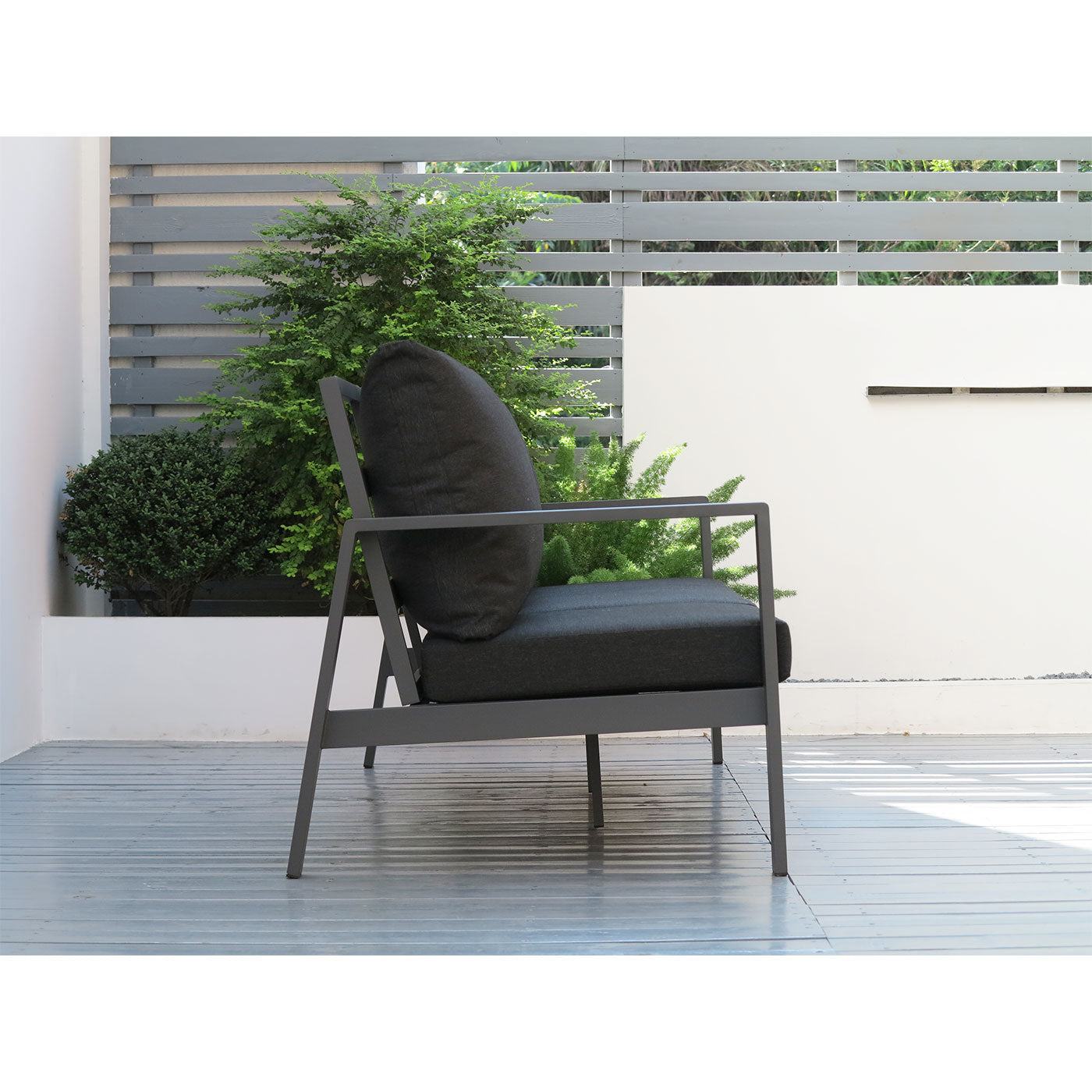 Paris Single Seater White Aluminium Outdoor Sofa Lounge with Arms - Grey Cushion (Set of 2)