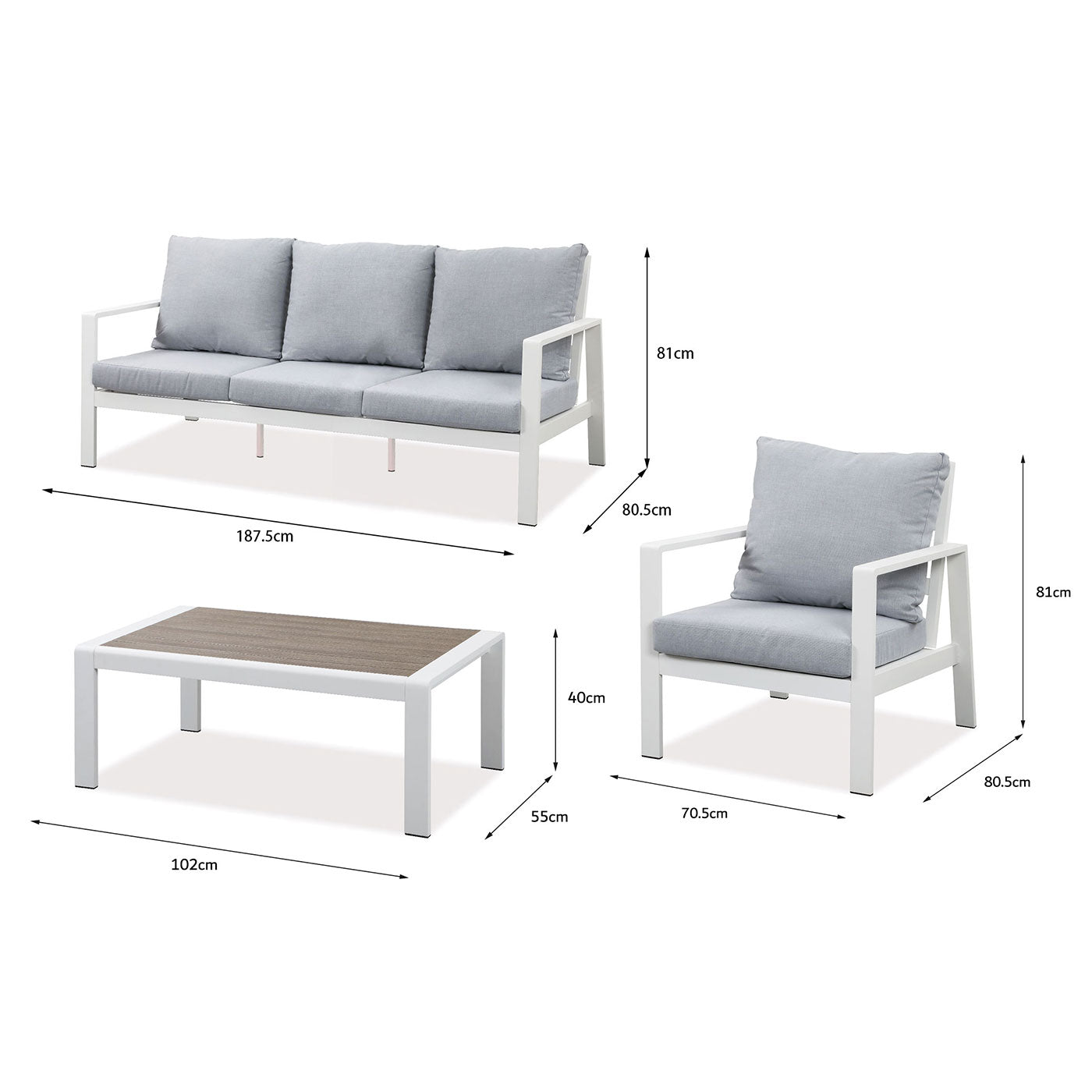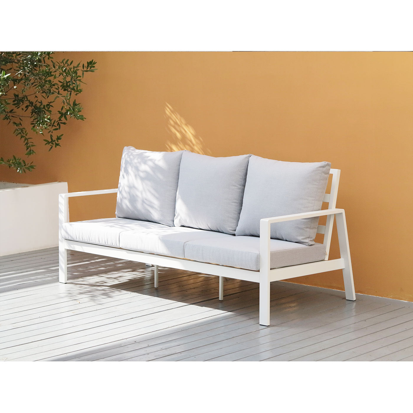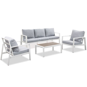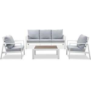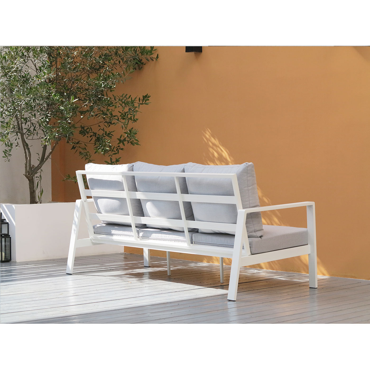 Florence 5 Seater White Aluminium Sofa Lounge Set - Light Grey Cushion