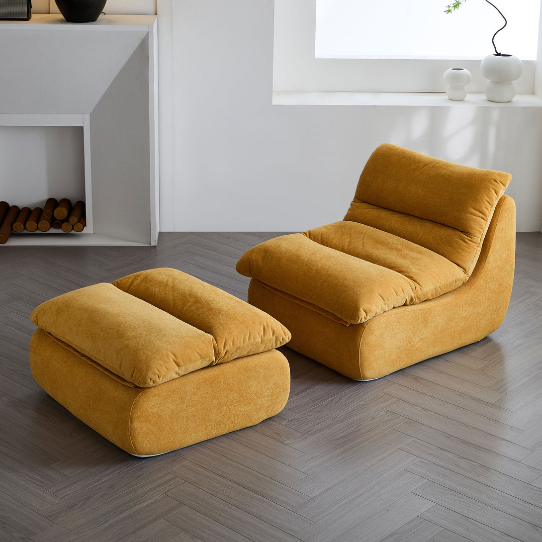 ARCHER Lounge Chair & Ottoman Set – Amber Yellow Flannel