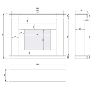 • Fireplace Suite Dimensions (1400W x 300D x 1100H mm)