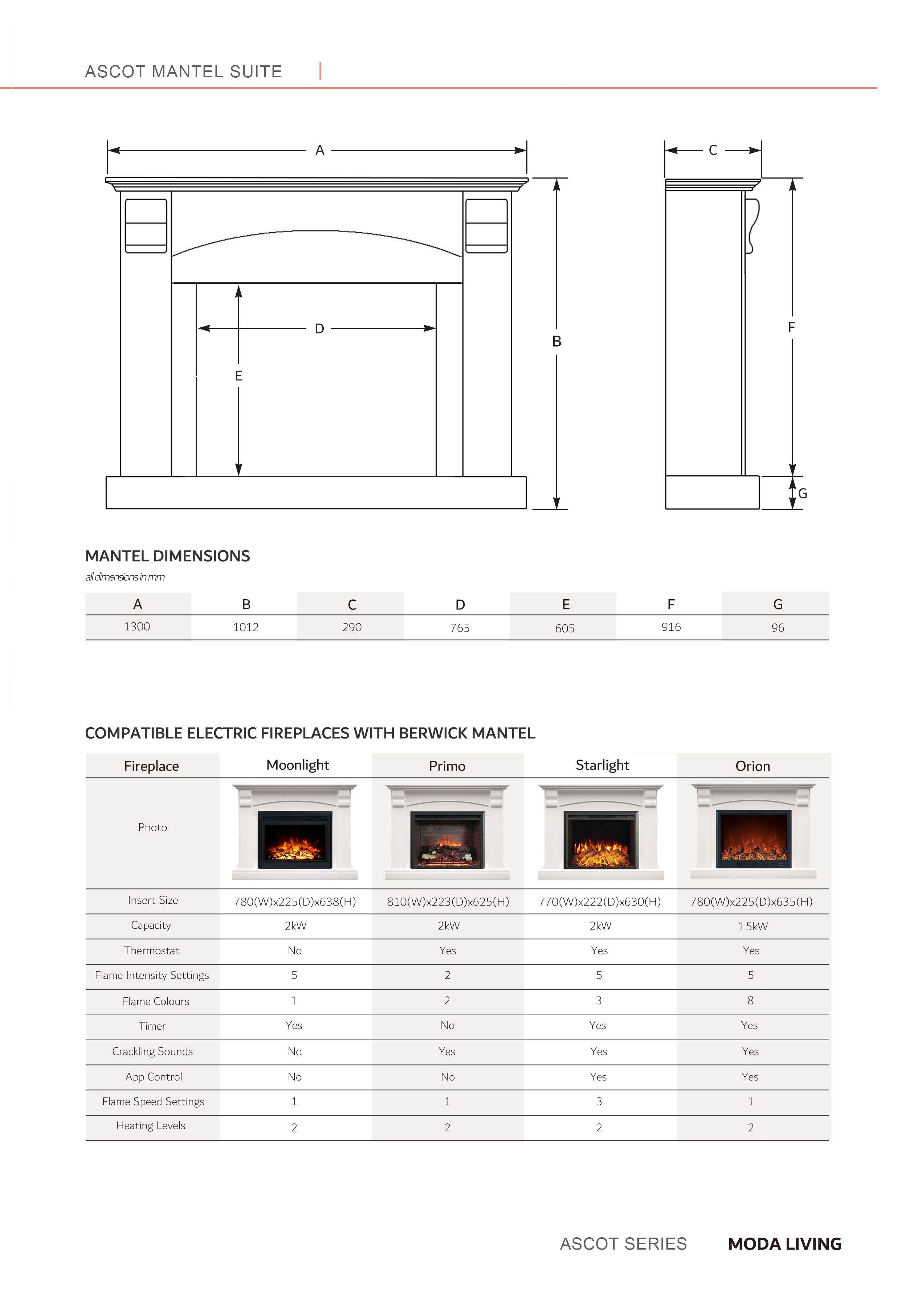 • Includes the Ascot White Mantel and 30 inch Orion Electric Fireplace Insert