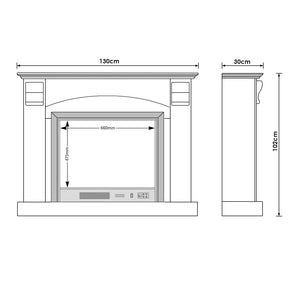 • Fireplace suite dimensions: 130W x 29D x 101.2H cm