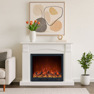Ascot 1500W Electric Fireplace Heater White Mantel Suite with 30" Orion Insert (Model: EFBG01W-EFCM30A)