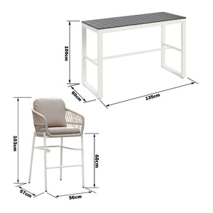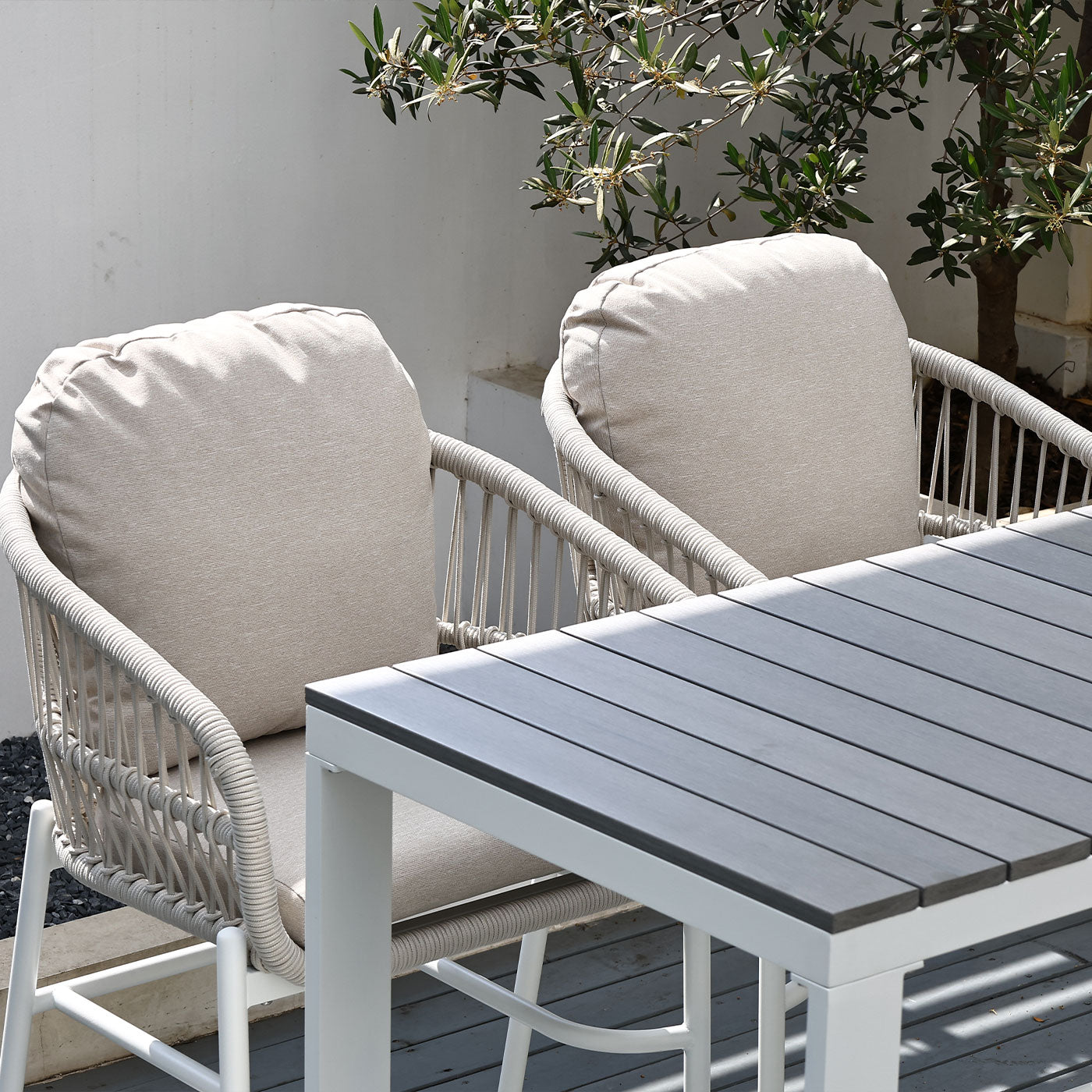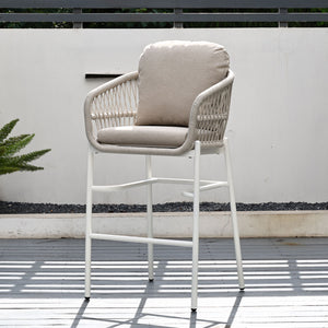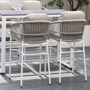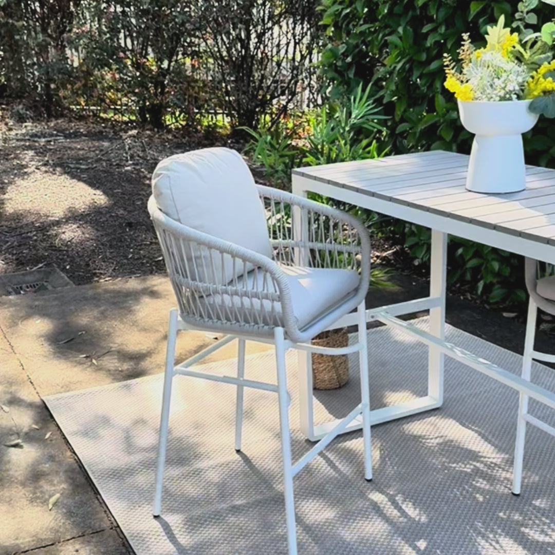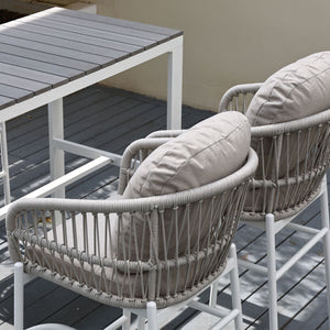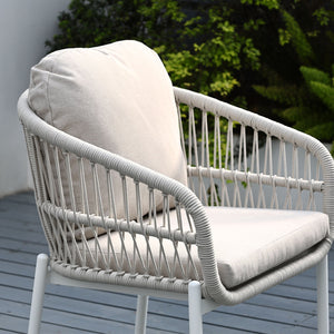 Paris Single Seater White Aluminium Outdoor Sofa Lounge with Arms - Grey Cushion (Set of 2)