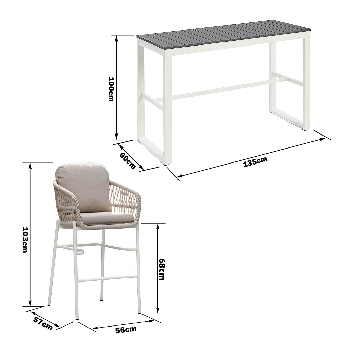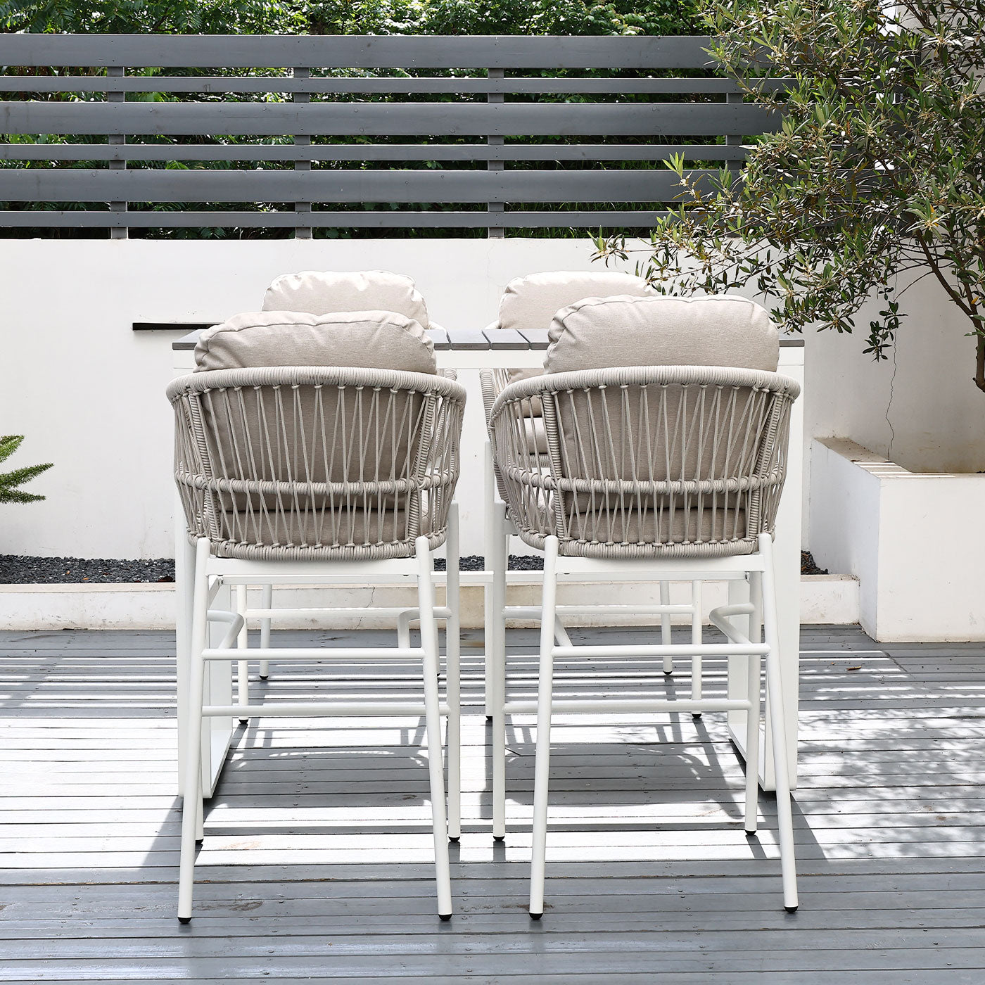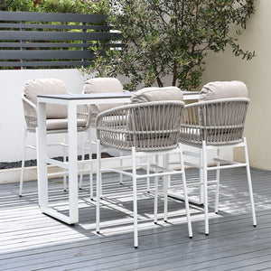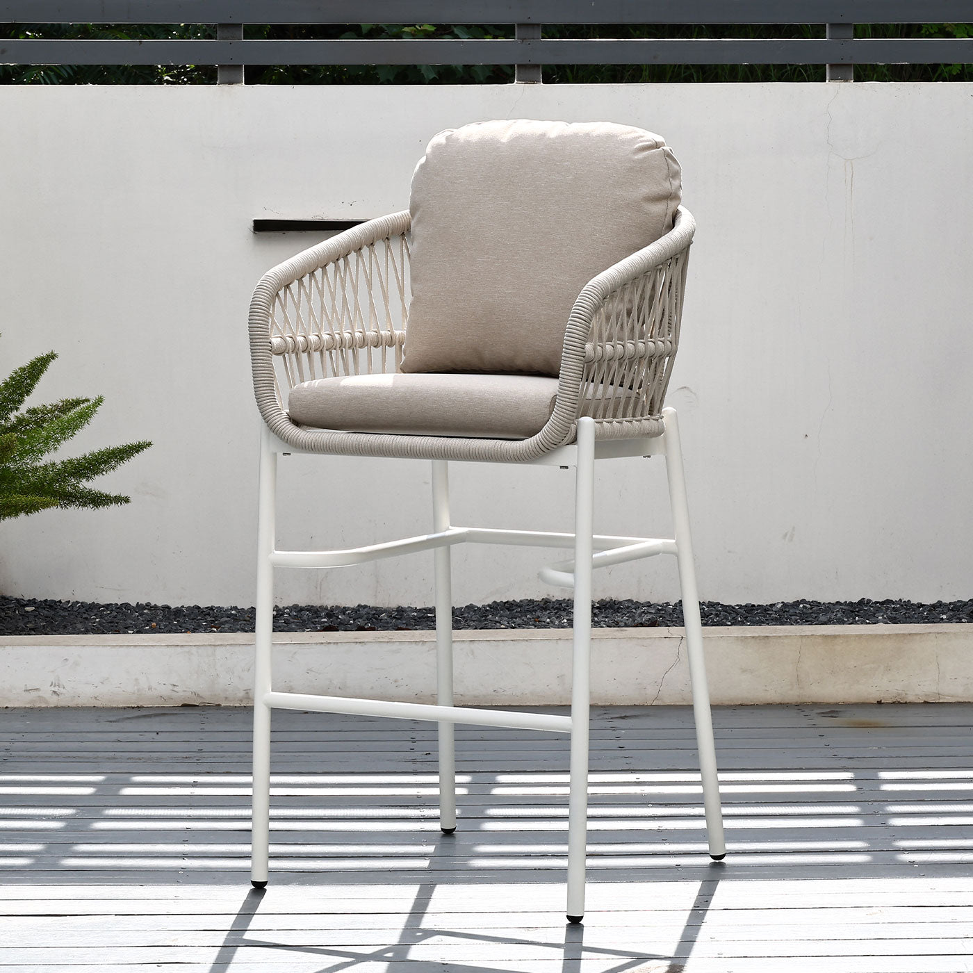 Paris Single Seater White Aluminium Outdoor Sofa Lounge with Arms - Grey Cushion (Set of 2)