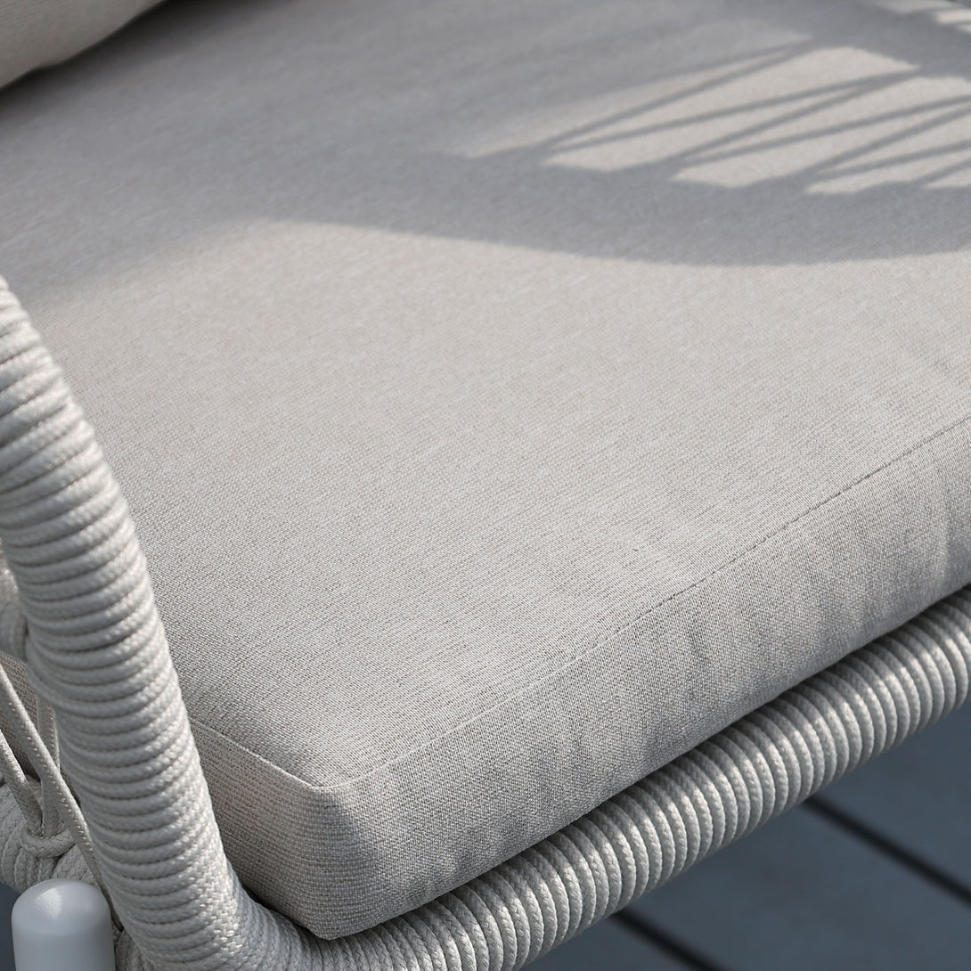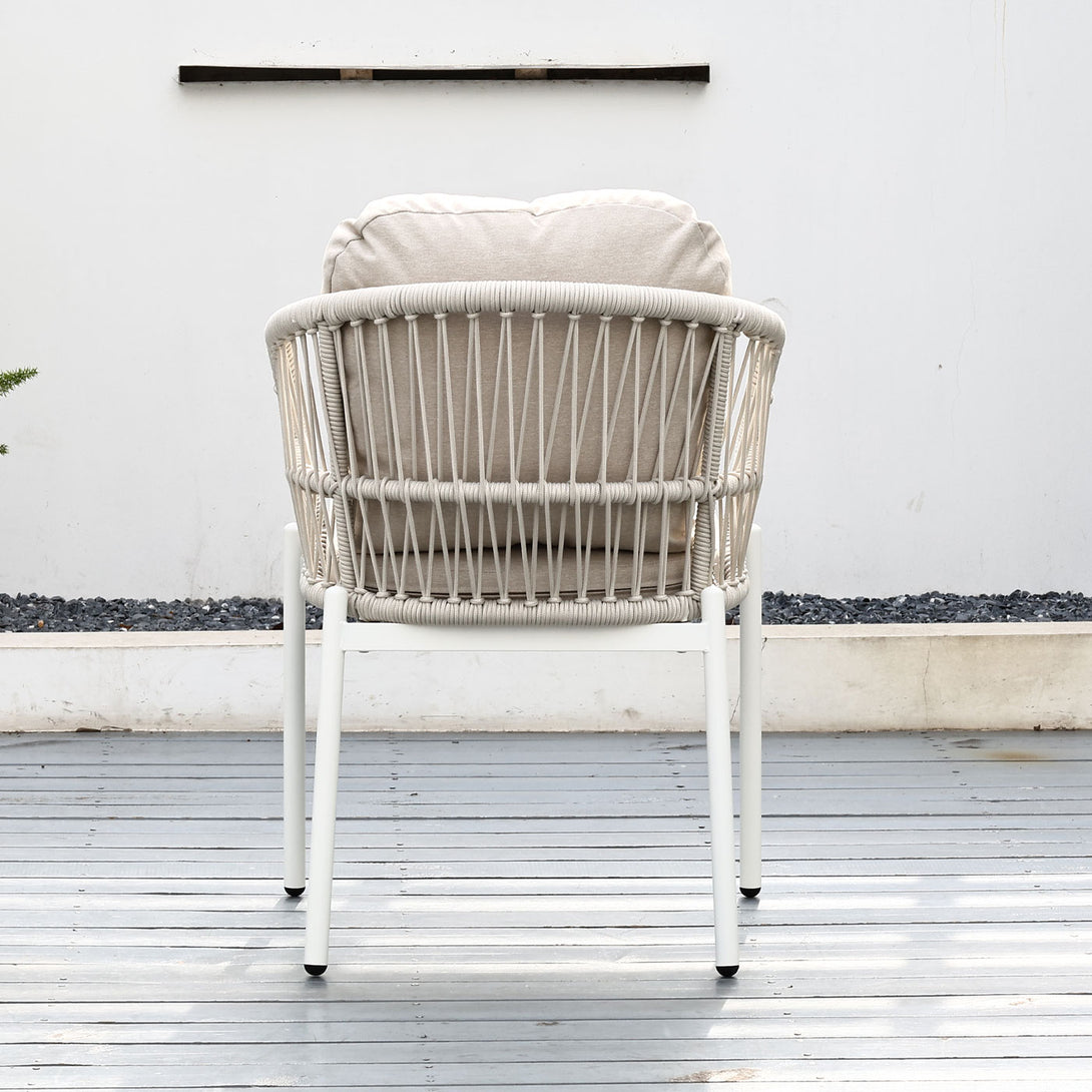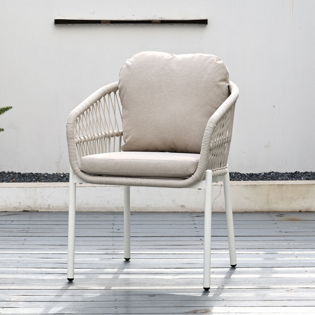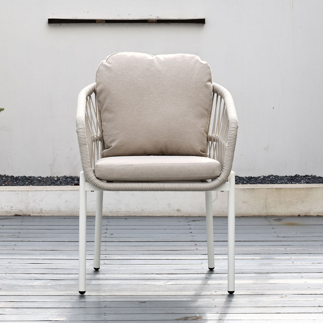 Bali White Aluminium Outdoor Dining Chairs with Arms – Beige Rope and Cushion (Set of 4)
