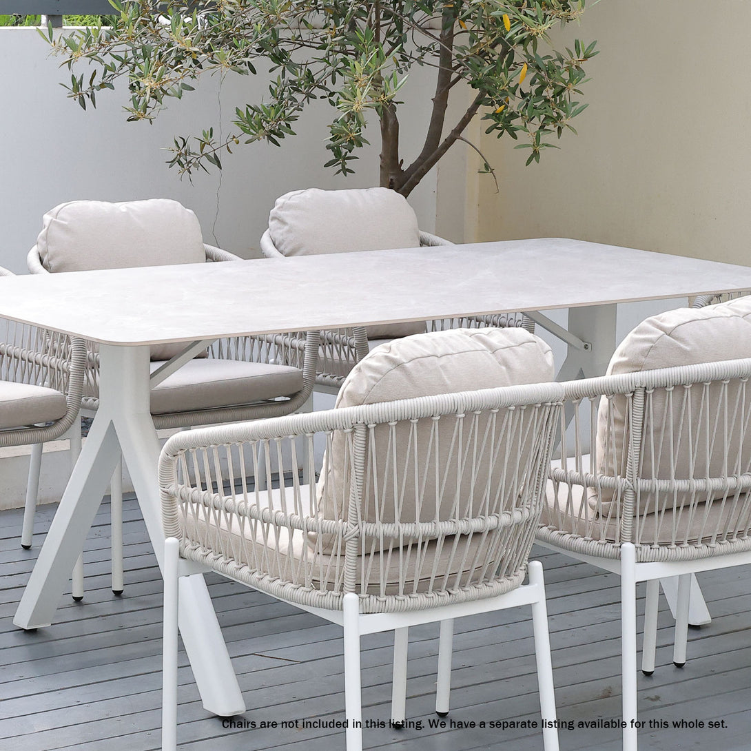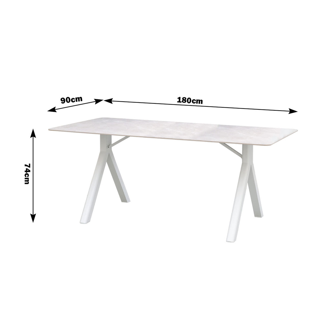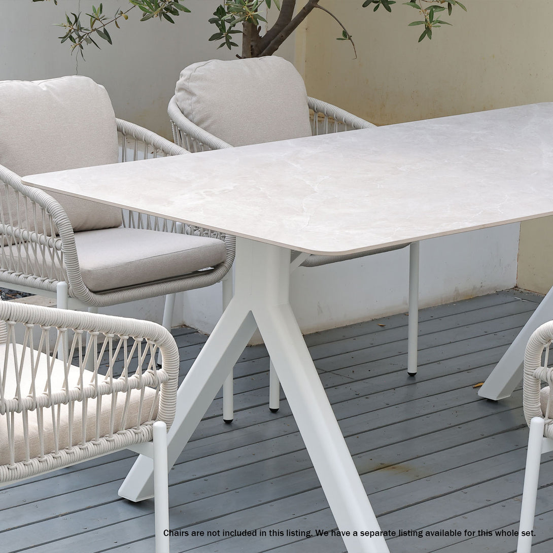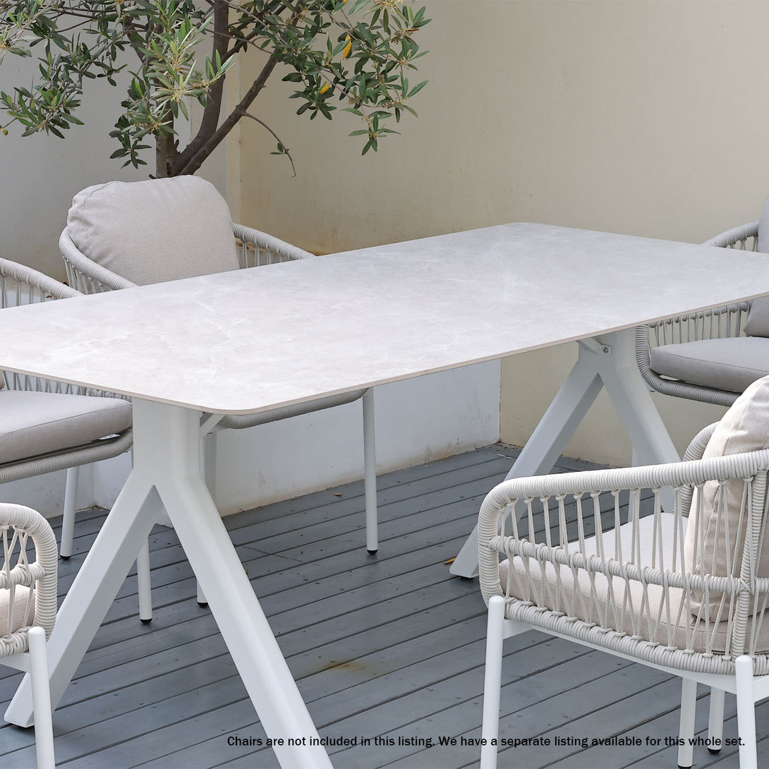 Bali White Aluminium Outdoor Dining Table with Sintered Stone Top (180x90cm)