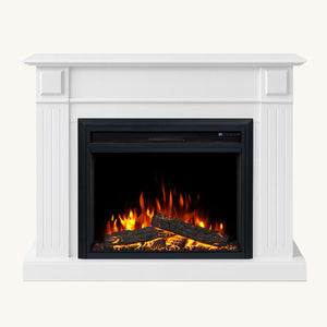 Elevate your living space with the Berwick Electric Fireplace Suite, featuring a beautifully crafted white mantel paired with the 30" New Moonlight insert. Enjoy a larger and clearer flame display with 6 flame colours, adjustable ember bed lighting, realistic resin logs, flame speed control, and smartphone app operation. With efficient heating and customisable ambience, this suite adds both warmth and timeless charm to your home.
