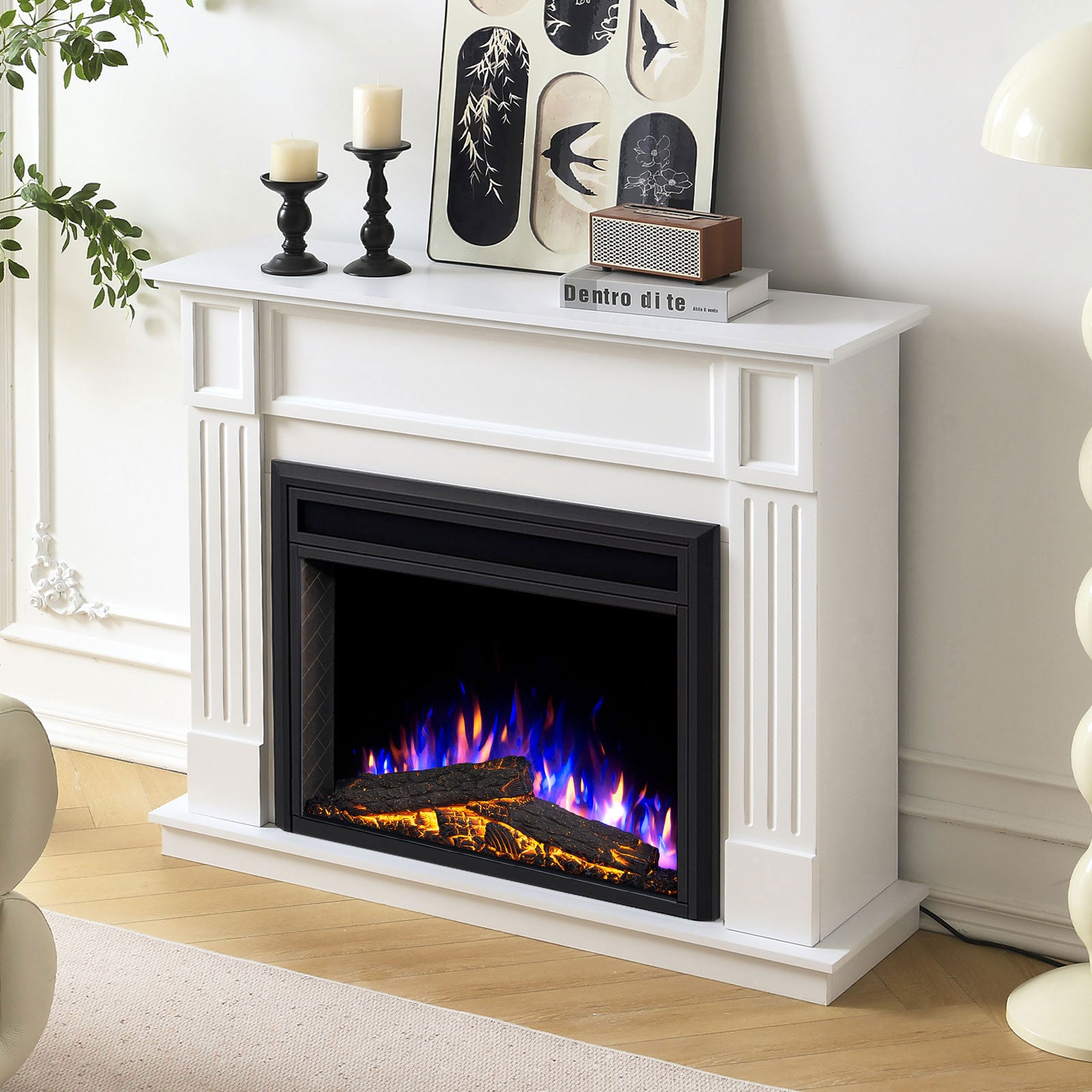 Home Electric Fireplace Suites Clarendon 2000W Electric Fireplace Heater White Mantel Suite with 30" Moonlight Insert