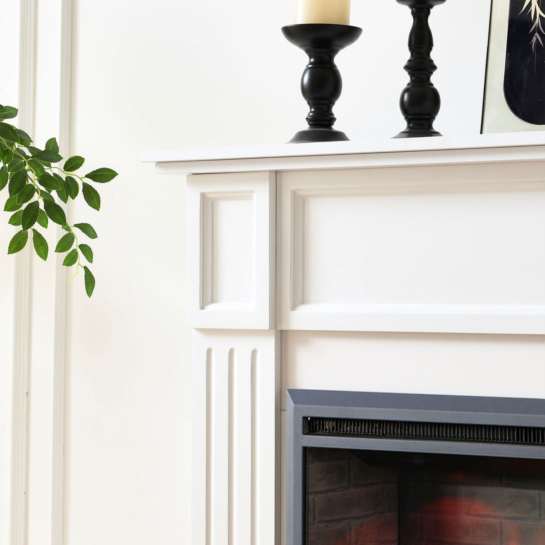 Introducing the Clarendon White Fireplace Mantel - a beautifully crafted, classic mantel designed to enhance your home's aesthetic even without an electric fireplace insert. With its fluted columns, elegant panel detailing, and crisp white finish, the Clarendon mantel brings timeless sophistication to any room.