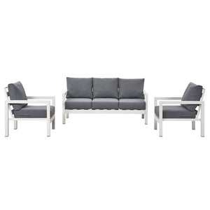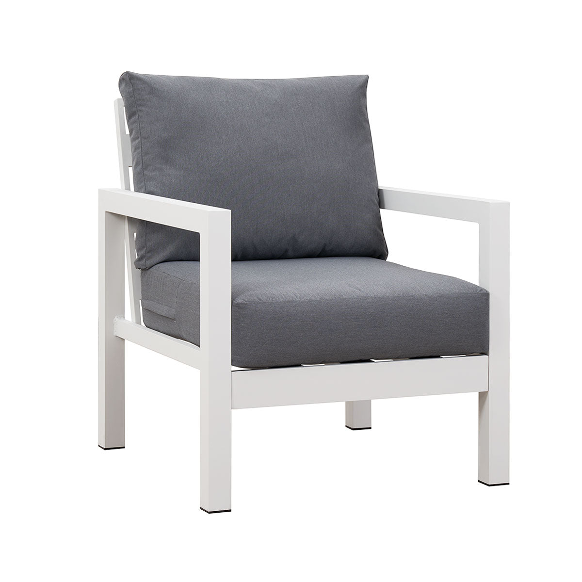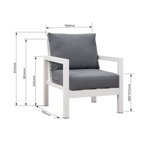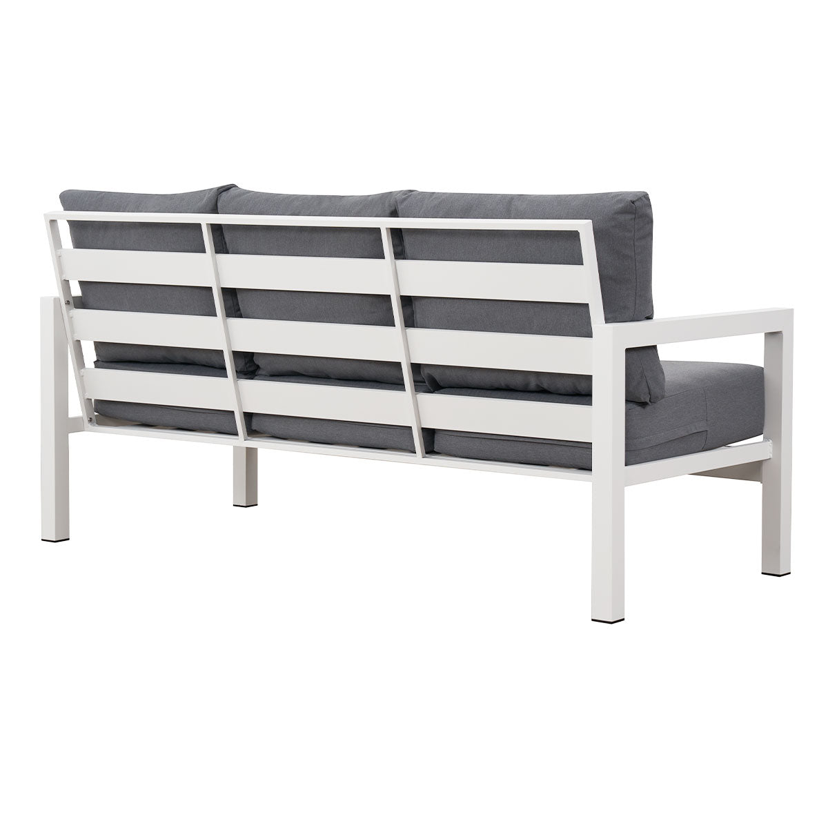 Coogee 5 Seater White Aluminium Sofa Lounge - Grey Cushion