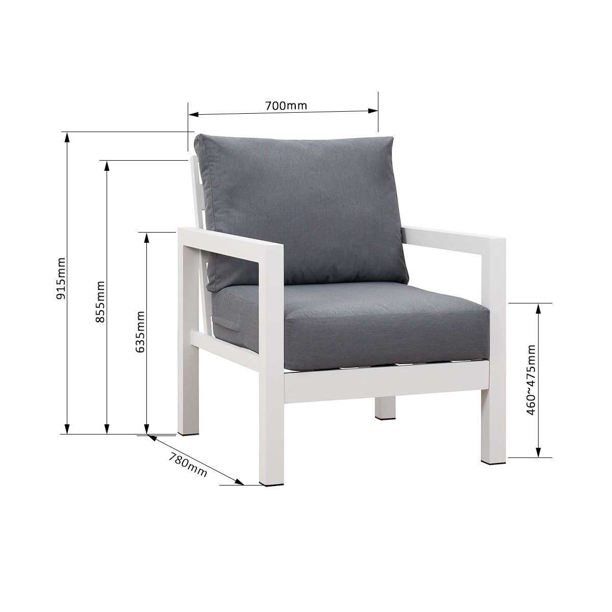 • Material: Aluminium, High Density Foam Cushion Inserts, Fabric Cushion Covers